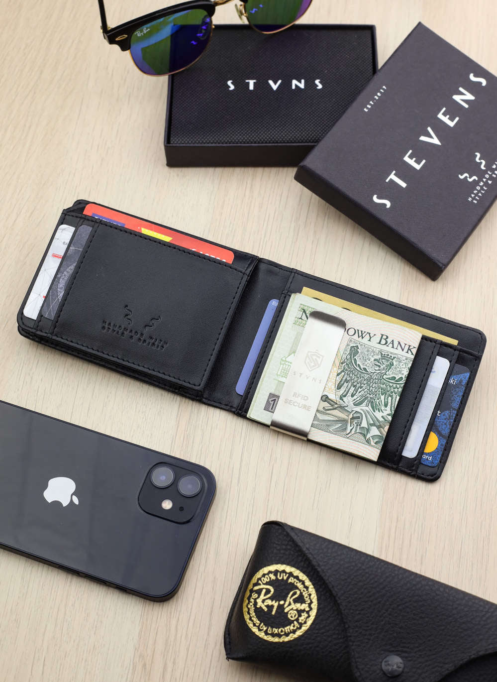- Banknošu klipsis: Nerūsējošā tērauda klipsis nodrošina banknošu drošu glabāšanu.