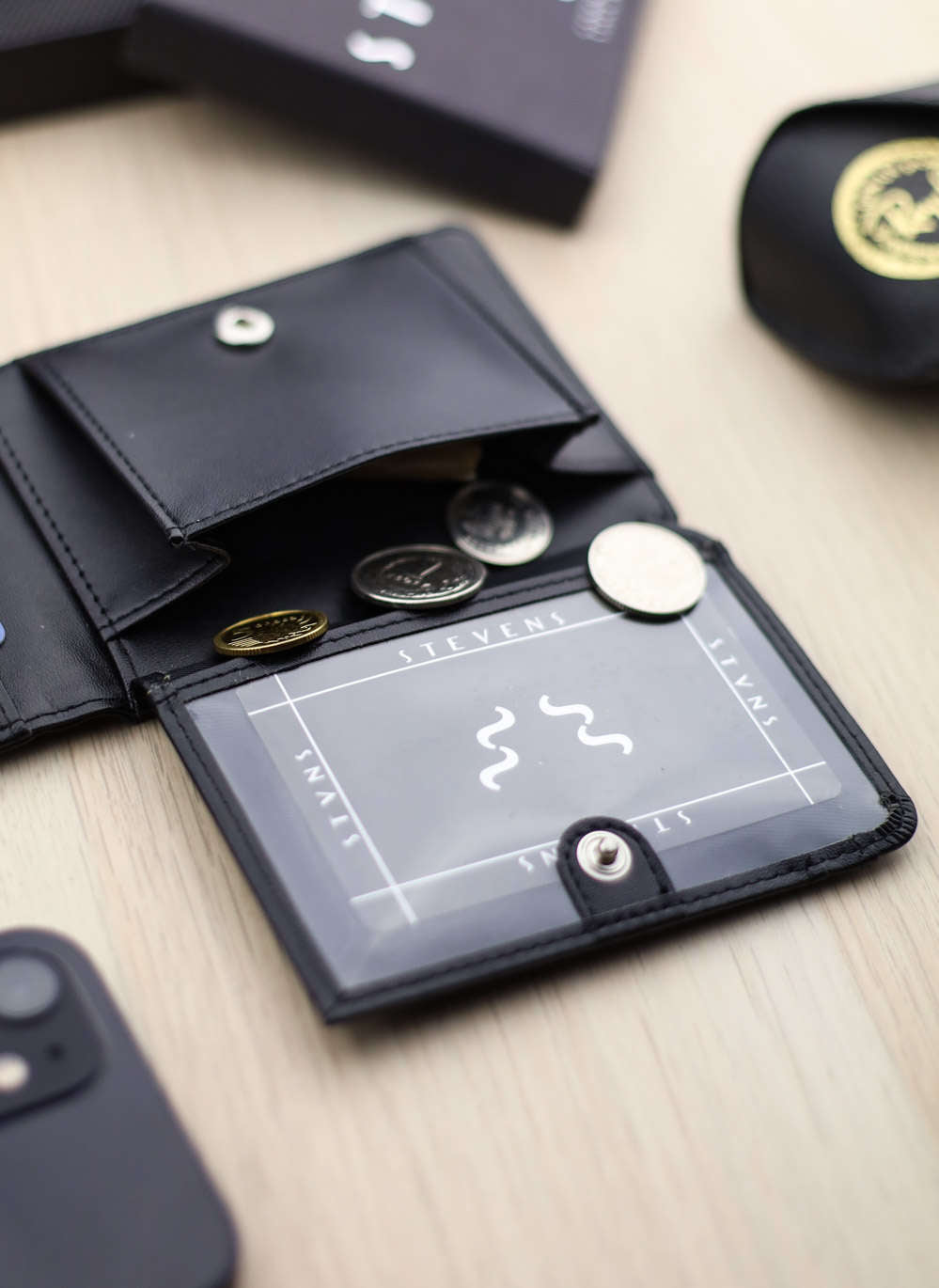 Viedais karšu nodalījumu, naudas klipša un monētu nodalījumu izvietojums nodrošina, ka makā ir pietiekami daudz vietas visam nepieciešamajam, vienlaikus saglabājot kompaktumu un plānumu.