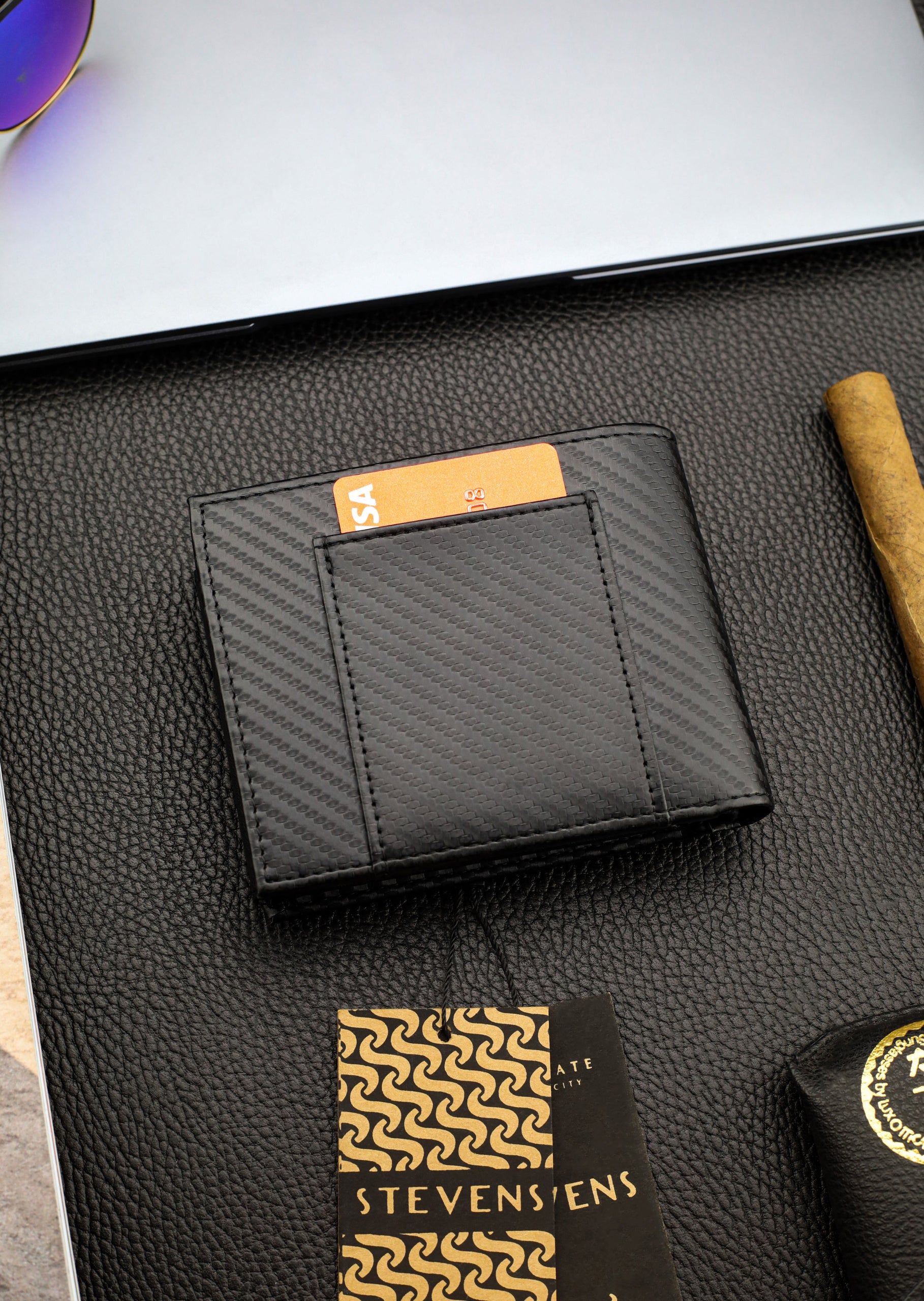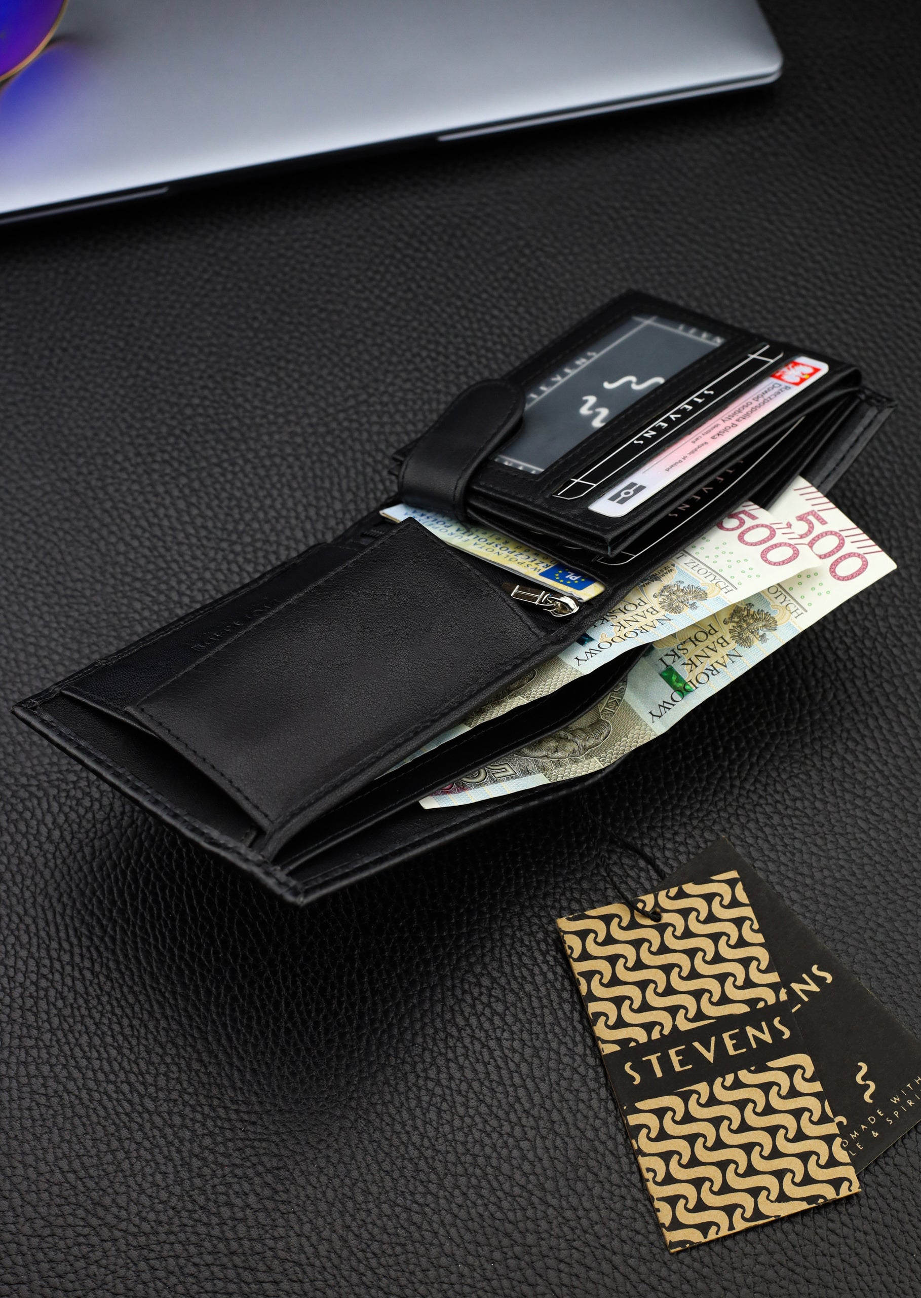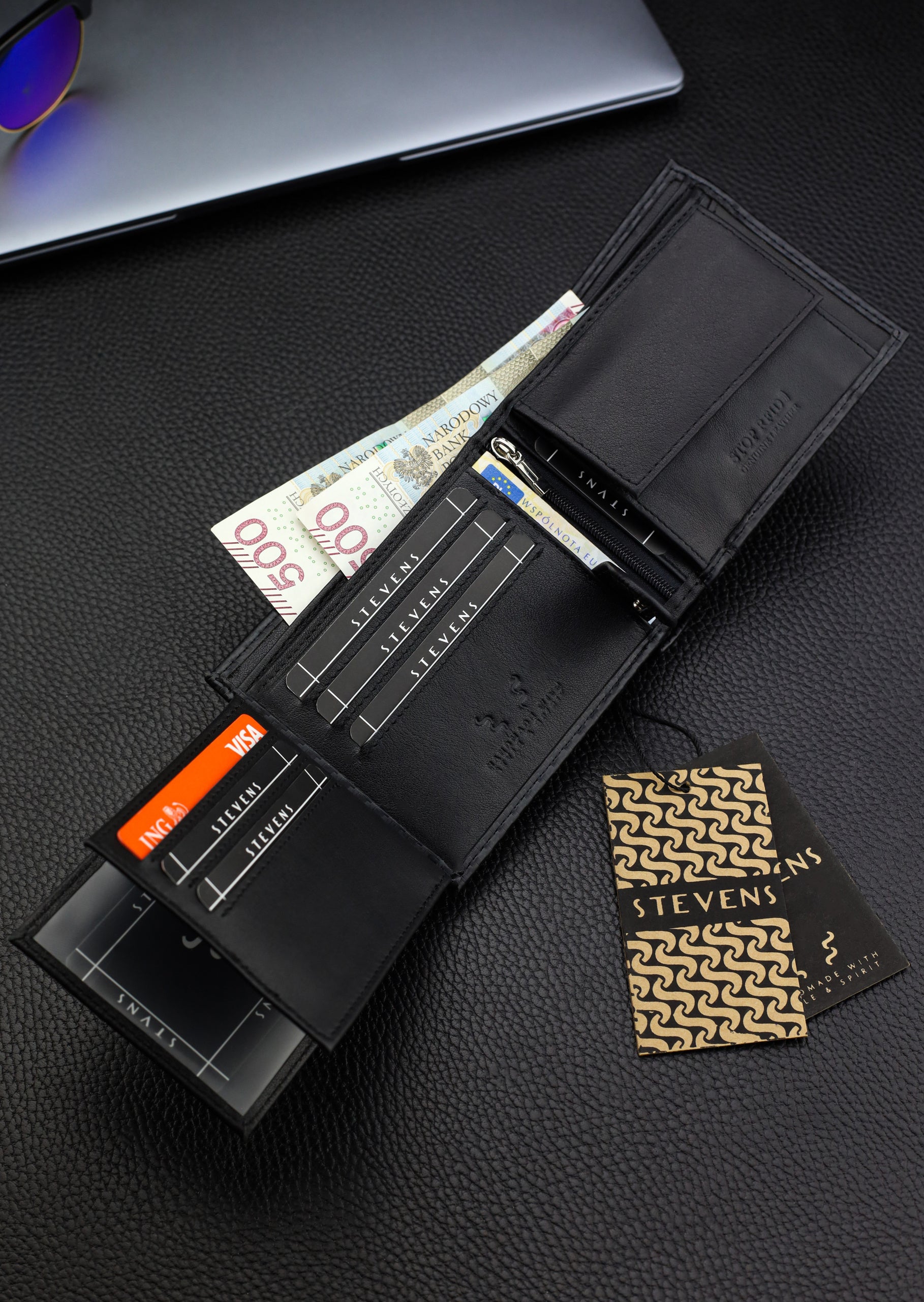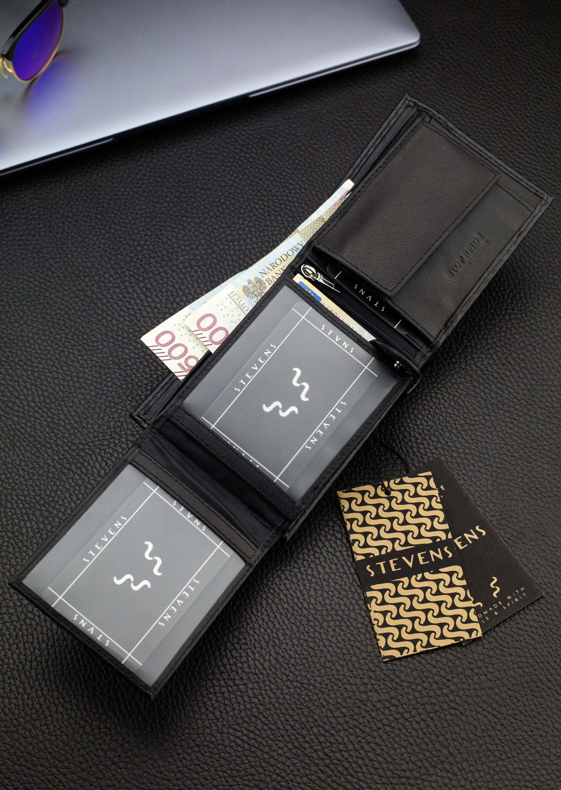 Vīriešu ādas maks Stevens, melns, RFID aizsardzība