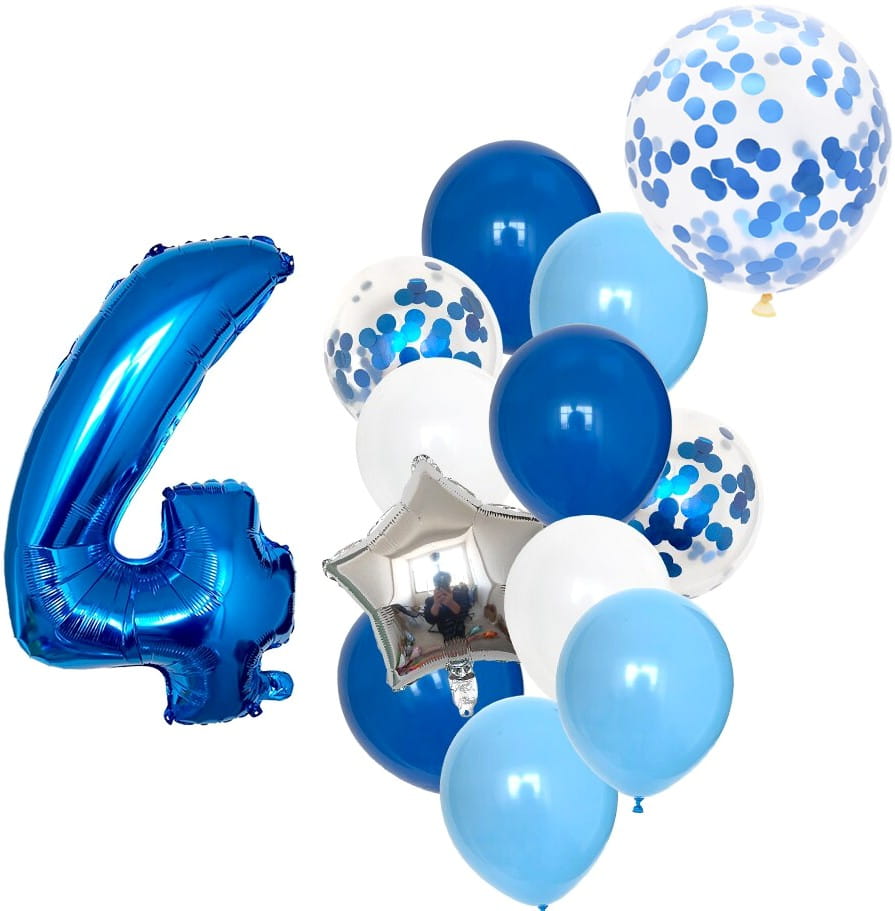 Šis 12 balto un zilo balonu komplekts ir lieliska izvēle īpašiem gadījumiem, īpaši bērna ceturtās dzimšanas dienas svinībām.