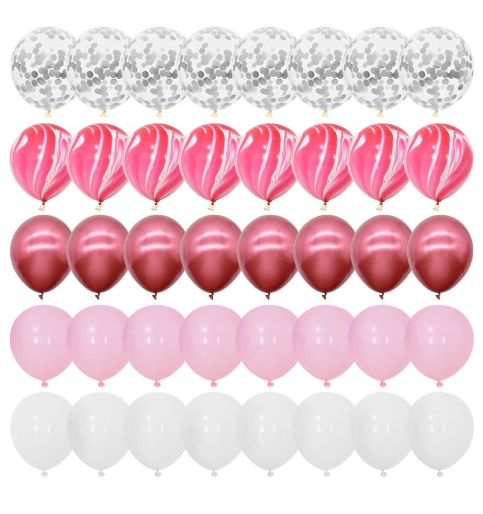Šis 40 rozā un balto balonu komplekts ir lieliska izvēle elegantu dekorāciju veidošanai. Komplektā ietilpst trīs dažādu veidu baloni: