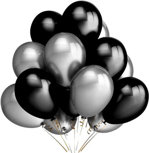 Šis 50 melnu un sudrabainu balonu komplekts ir lieliski piemērots elegantu dekorāciju veidošanai. Komplektā ietilpst divu veidu baloni, kurus var piepildīt ar parasto gaisu vai hēliju iespaidīgāka efekta iegūšanai.