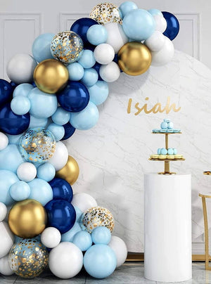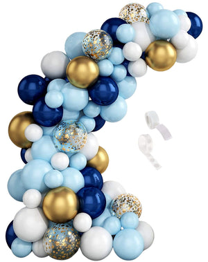 Šis 92 balonu komplekts, kas sastāv no zila, balta un zelta krāsas, ir lieliski piemērots elegantu dekorāciju veidošanai. Komplektā ietilpst dažādu izmēru baloni, kurus var piepildīt gan ar parasto gaisu, gan ar hēliju, lai panāktu vēl iespaidīgāku efektu.
