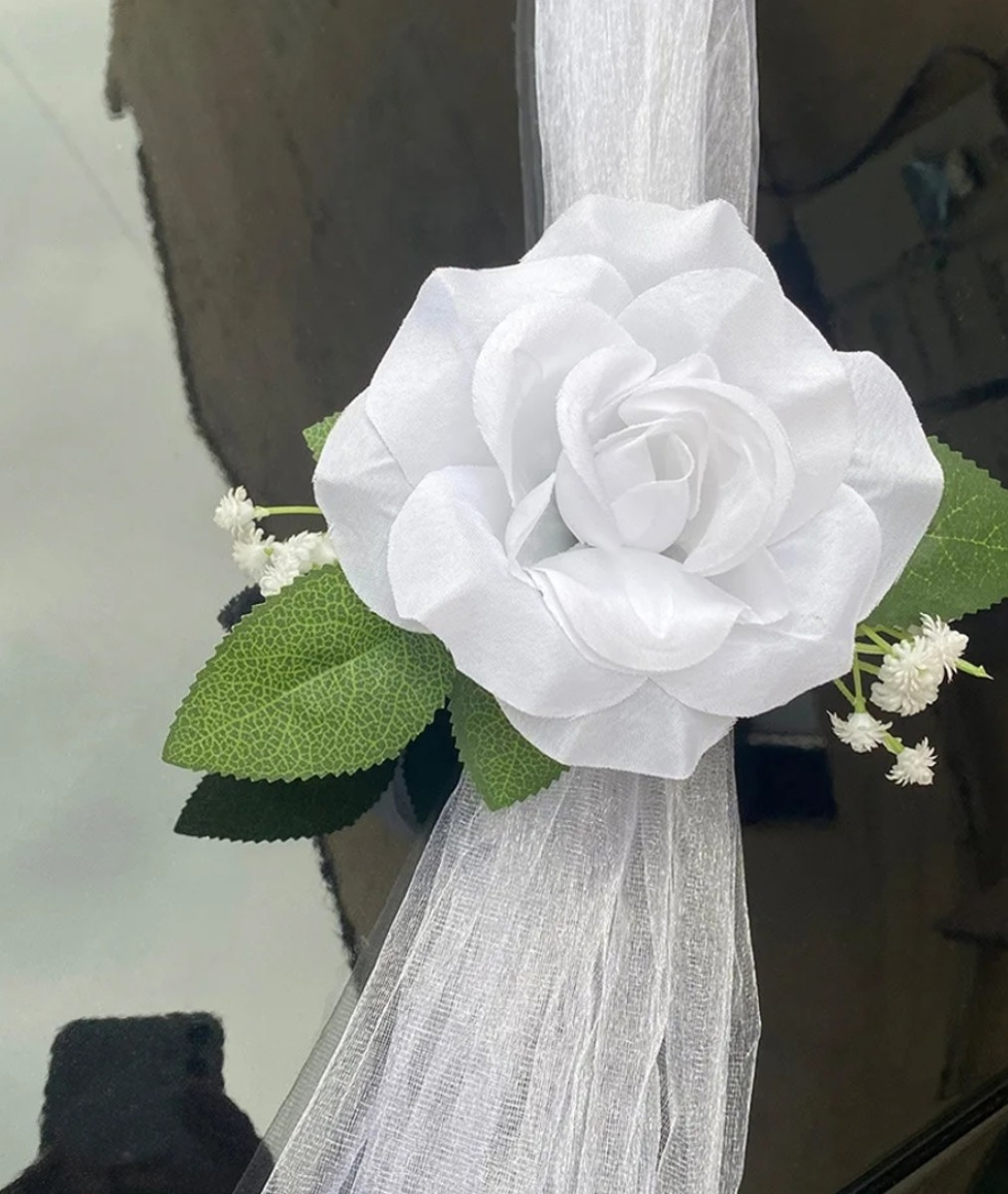 Šīs baltās mākslīgās rozes ir lieliska izvēle kāzu un automašīnu dekorācijām. Izgatavotas no augstas kvalitātes materiāliem, tās ilgi saglabā savu lielisko izskatu un rada reālistisku iespaidu.