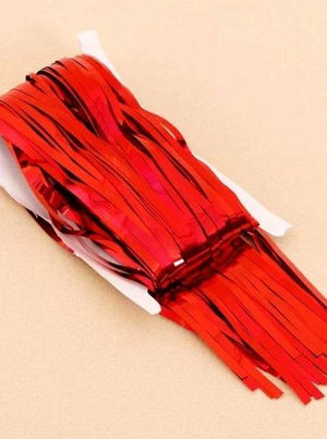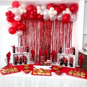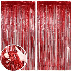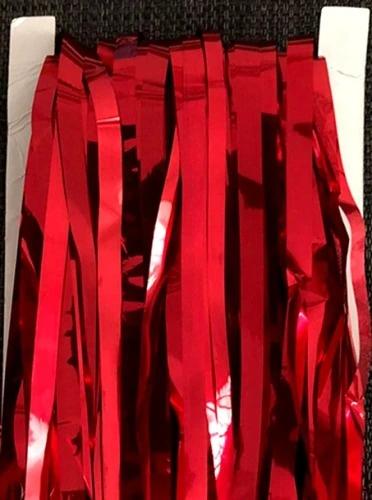 Sarkans dekoratīvs aizkars, kas lieliski piemērots dažādām svinībām un pasākumiem.