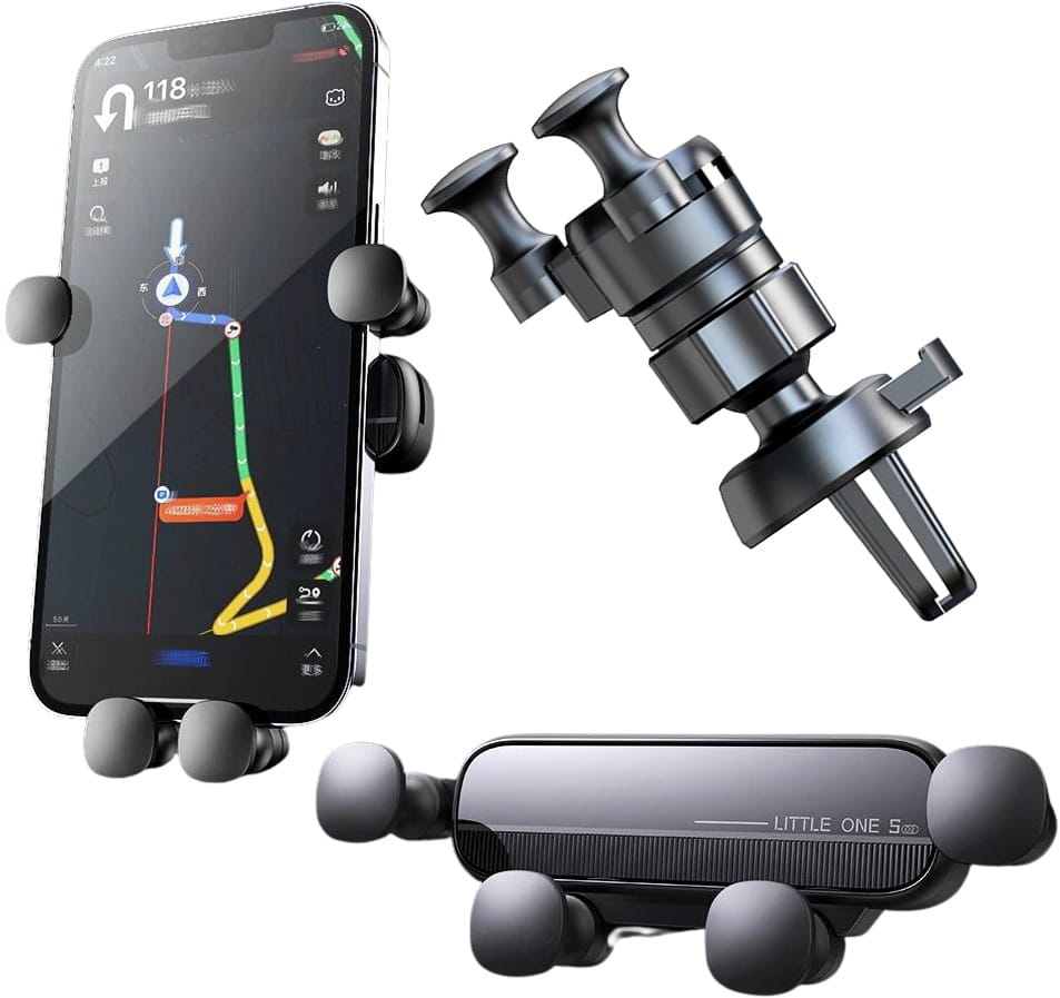 Moderns un elegants telefona turētājs, kas darbojas pēc gravitācijas principa, nodrošinot ērtu un drošu lietošanu automašīnā.