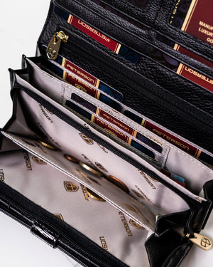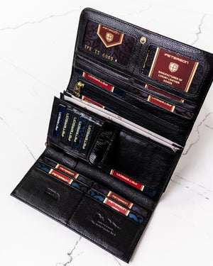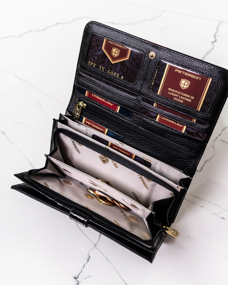 Šis elegantais sieviešu maks, kas izgatavots no īstas ādas, ir lieliska izvēle tiem, kas novērtē kvalitāti un funkcionalitāti. Ar vairāk nekā 15 karšu nodalījumiem un atsevišķu nodalījumu monētām tas nodrošina ērtu un organizētu jūsu mantu glabāšanu. Melnā krāsa nodrošina klasisku un daudzpusīgu stilu, kas piemērots jebkuram gadījumam.