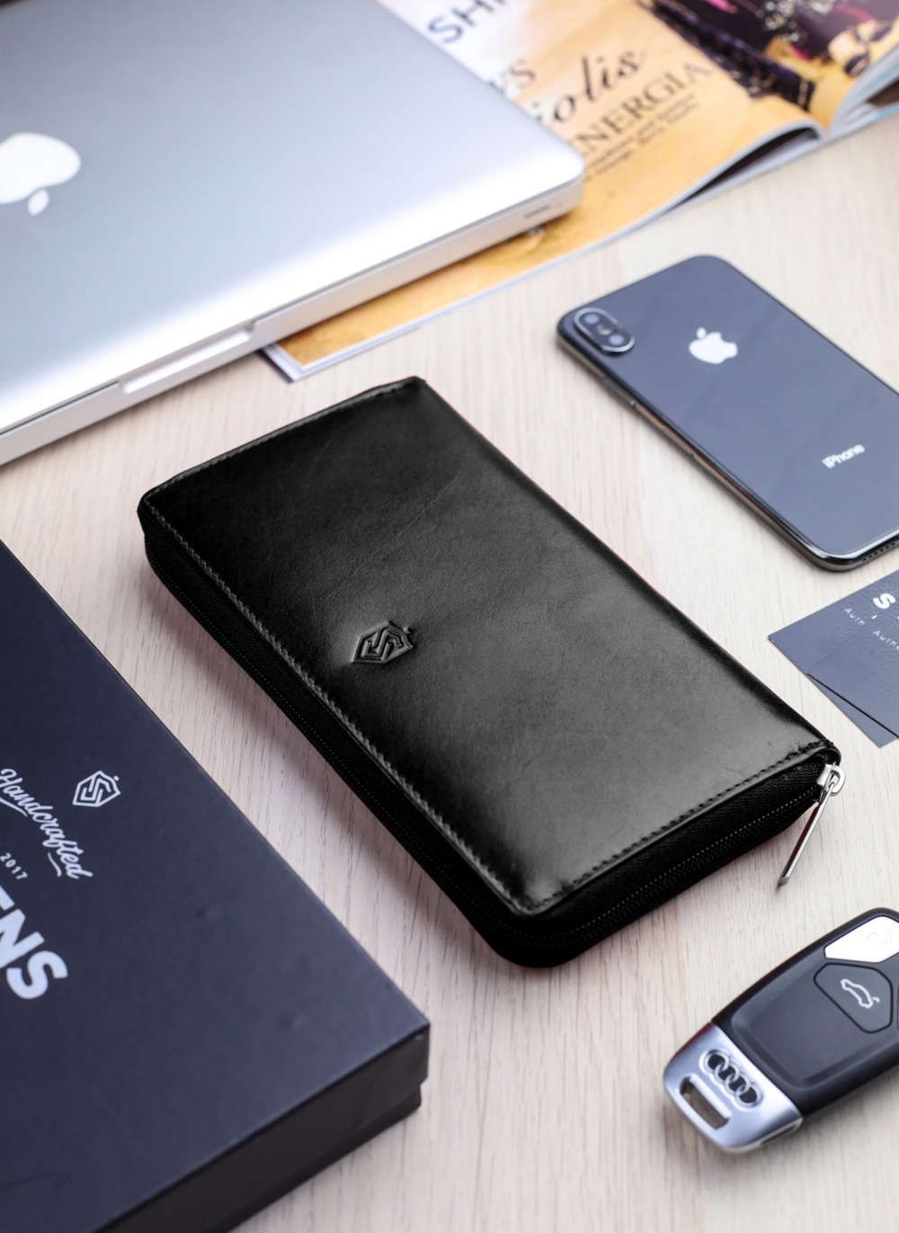 Stevens sieviešu maks ar RFID aizsardzību un rāvējslēdzēju, melns
