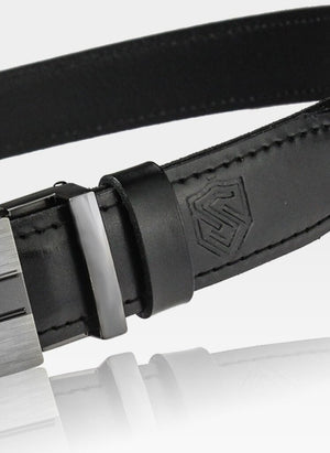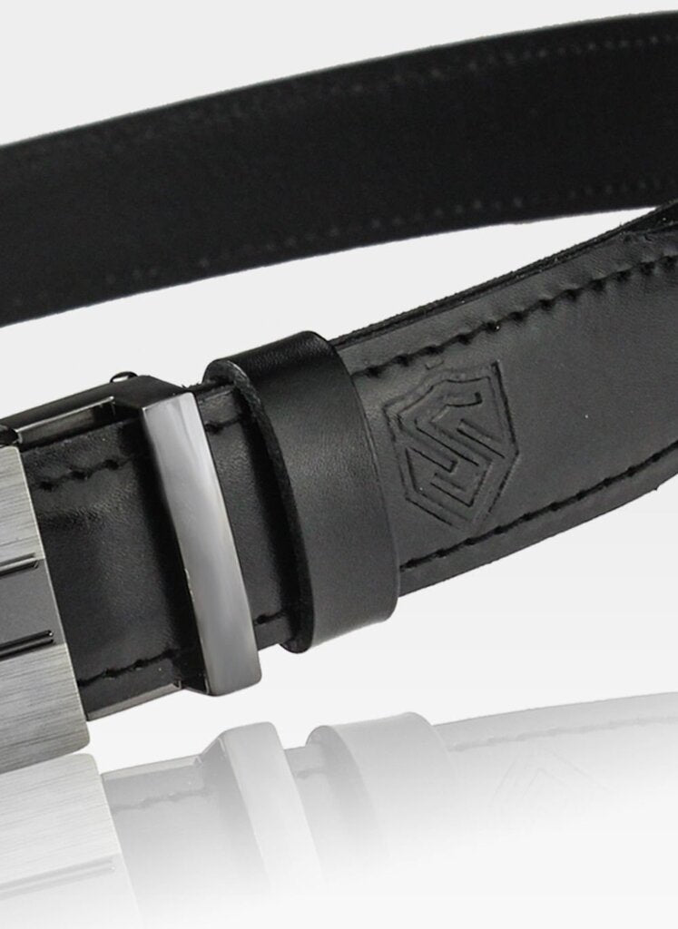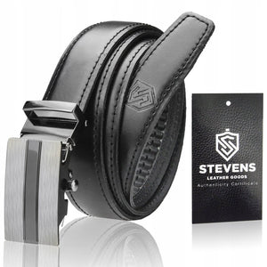 Vīriešu ādas josta Stevens ar automātisko sprādzi, melna