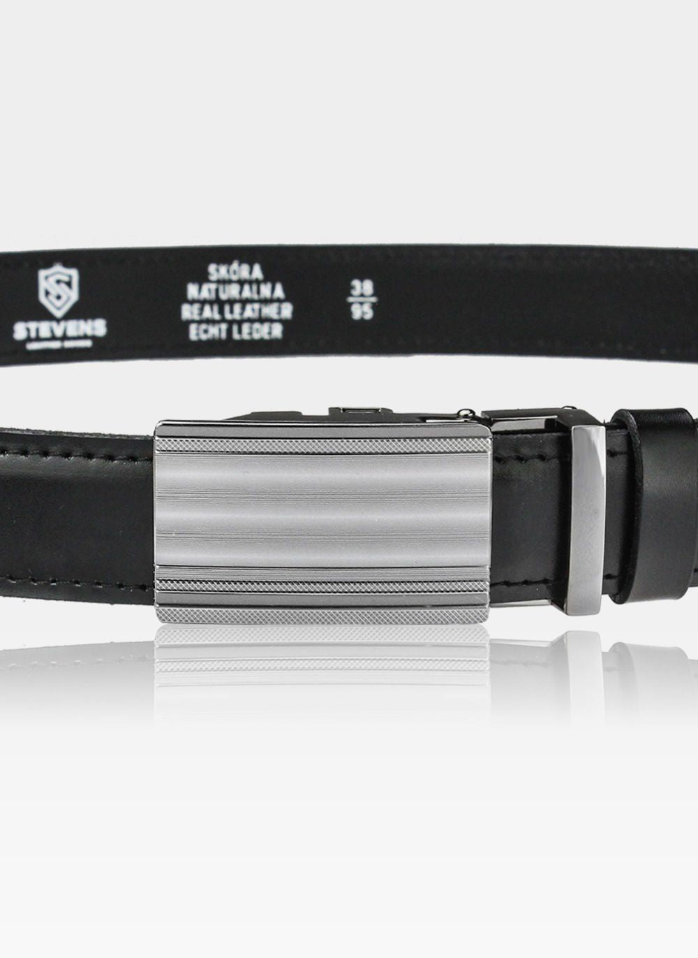 Vīriešu ādas josta Stevens ar automātisko sprādzi, melna D36
