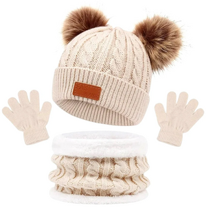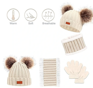 Šis trīsdaļīgais bērnu komplekts ir lieliska izvēle aukstajai sezonai. Komplektā ietilpst cepure, šalle un cimdi, kas izgatavoti no augstas kvalitātes akrila šķiedras, kas ir elastīga, elastīga, mīksta un silta.