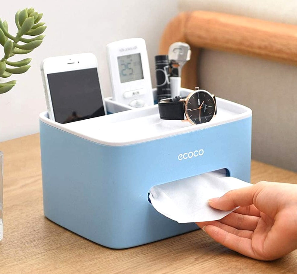 Šī salvešu kaste ir lielisks risinājums nelielu priekšmetu glabāšanai un organizēšanai. Tā ne tikai nodrošina vietu jūsu tālrunim, bet tai ir arī dažāda izmēra nodalījumi, kas ļauj ērti uzglabāt dažādas lietas.
