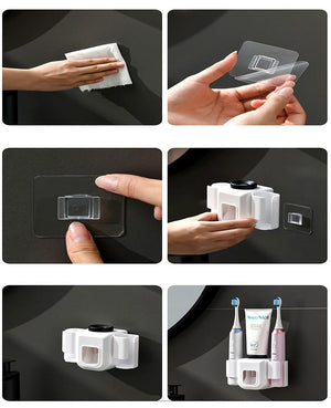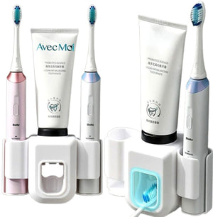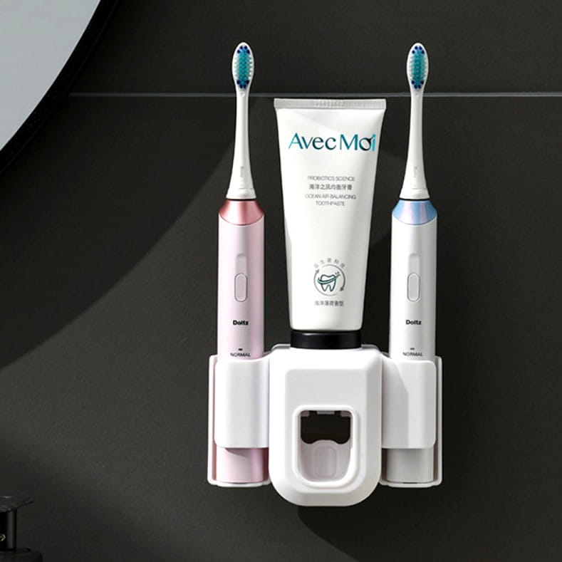 Vannas istabas turētājs divām elektriskajām zobu birstēm ar automātisko zobu pastas dozatoru