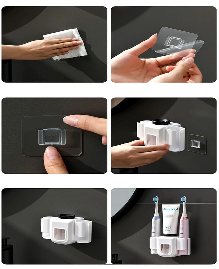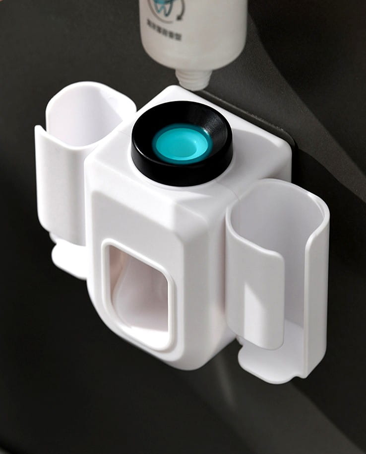 ✅ Turētājs ar automātisku zobu pastas dozatoru (zobu pasta tiek dozēta, nospiežot sviru ar zobu birsti)