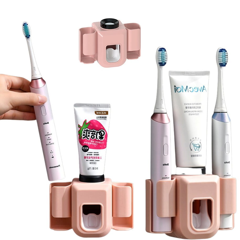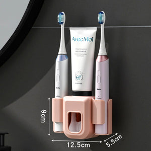 Vannas istabas turētājs divām elektriskajām zobu birstēm ar automātisko zobu pastas dozatoru