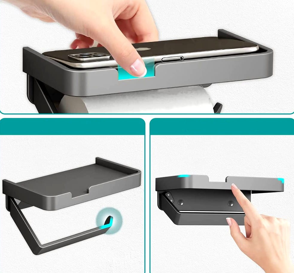 Šis tualetes papīra turētājs ar plauktu T11-1 ir ne tikai praktisks, bet arī stilīgs risinājums jūsu vannas istabai.