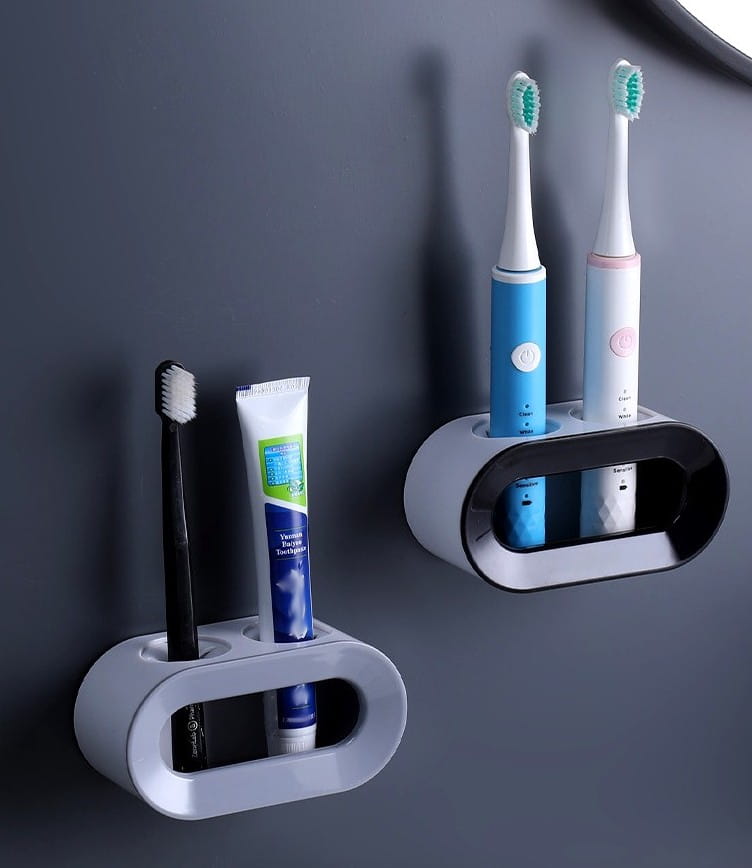 Zobu birstes turētājs vannas istabā divām elektriskām vai divām klasiskām zobu birstēm