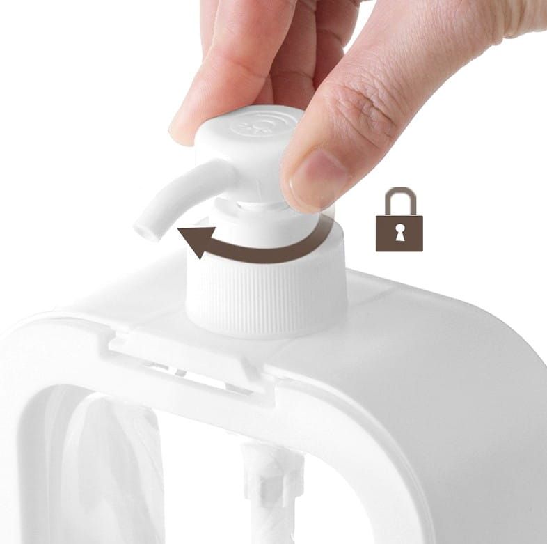 Elegants balts dozators šķidrajām ziepēm, losjoniem vai trauku mazgāšanas līdzeklim