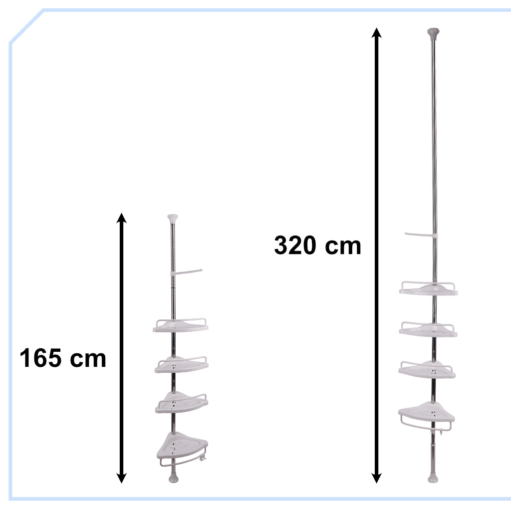 Ja vannas istabā nav pietiekami daudz vietas, stūra vannas istabas plaukts ir ideāls risinājums – to var uzstādīt dušā bez jebkādiem instrumentiem. Vienkārši salociet plauktu un novietojiet to vēlamajā vietā. Teleskopiskais dizains ļaus tam lieliski iederēties jūsu vannas istabā!