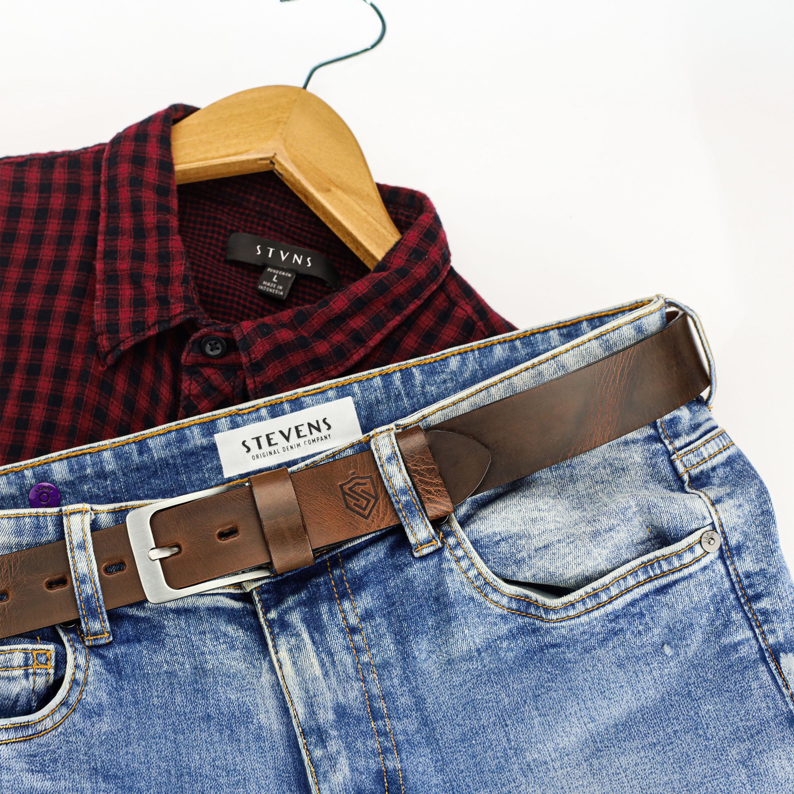 Vīriešu ādas josta STEVENS tumši brūna D41