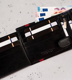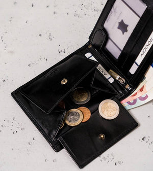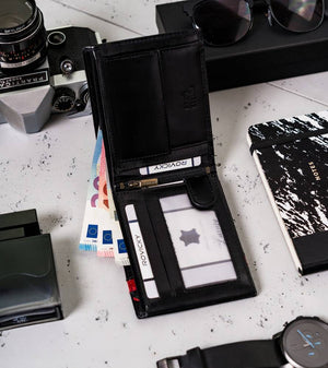 Šis maks ir ne tikai stilīgs, bet arī praktisks, ar pietiekami daudz vietas jūsu kartēm un skaidrai naudai. Turklāt iebūvētā RFID aizsardzība palīdzēs aizsargāt jūsu personas datus no neatļautas skenēšanas.