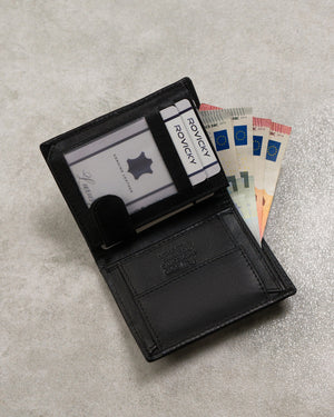 Šis elegantais un kompaktais maks ir lieliska izvēle tiem, kas novērtē kvalitāti un funkcionalitāti. Izgatavots no īstas ādas, tas nodrošina izturību un stilīgu izskatu. Melnā krāsa nodrošina daudzpusību, tāpēc maks lieliski iederēsies jebkurā stilā. Turklāt RFID aizsardzība palīdzēs aizsargāt jūsu kartes no nevēlamas skenēšanas.