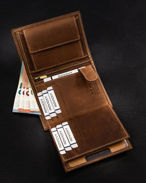 Šis elegantais un funkcionālais vīriešu maks no Always Wild kolekcijas ir izgatavots no dabīgas zamšādas un nubuka ādas, piešķirot tam greznu un izturīgu sajūtu. Gaiši brūnā krāsa nodrošina klasisku un daudzpusīgu stilu, kas piemērots dažādiem gadījumiem. Lielais izmērs nodrošina pietiekami daudz vietas visām nepieciešamajām lietām, un 6-10 karšu nodalījumi ļaus ērti uzglabāt visas nepieciešamās kartes. Turklāt integrētā RFID aizsardzība palīdzēs aizsargāt jūsu personas datus no neatļautas skenēšanas. Maka izmēri ir 13 cm x 9,5 cm x 2,5 cm, padarot to ideāli piemērotu ikdienas lietošanai.