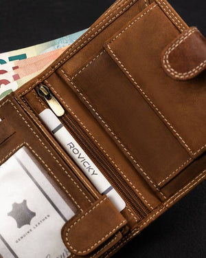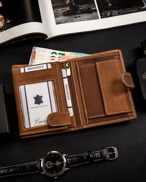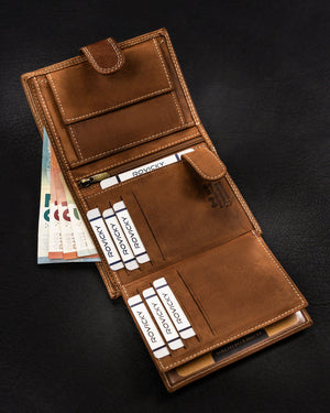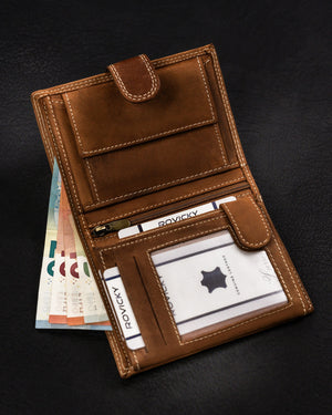 Šis elegantais un funkcionālais maks ir lieliska izvēle vīriešiem, kuri novērtē kvalitāti un stilu. Izgatavots no dabīgas zamšādas un nubuka ādas, tas nodrošina izturību un komfortu. Gaiši brūnā krāsa nodrošina klasisku un daudzpusīgu izskatu, kas piemērots dažādiem gadījumiem. Makam ir RFID aizsardzība, kas palīdz aizsargāt jūsu kartes no nevēlamas skenēšanas. Ar 6-10 karšu nodalījumiem tas nodrošina pietiekami daudz vietas visiem jūsu svarīgajiem dokumentiem. Izmērs 13 cm x 9,5 cm x 2,5 cm ļauj ērti uzglabāt maku kabatā vai somā.