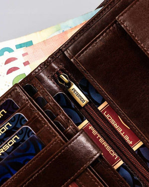 Šis elegantais vīriešu maks no Peterson kolekcijas ir izgatavots no augstas kvalitātes īstas ādas, kas nodrošina izturību un stilīgu izskatu.