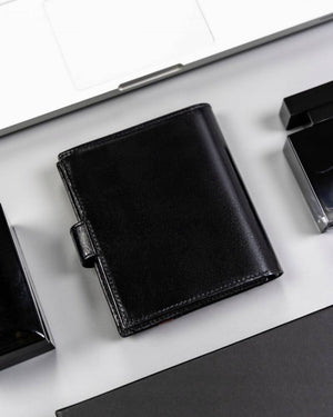 Šis elegantais vīriešu maks no Rovicky ir izgatavots no augstas kvalitātes īstas ādas, kas nodrošina izturību un stilīgu izskatu. Melnā krāsa piešķir tam klasisku un daudzpusīgu izskatu, kas piemērots jebkuram gadījumam.