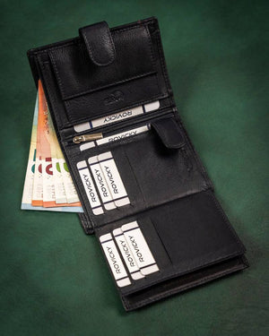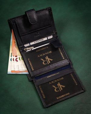 Šis elegantais vīriešu maks no Rovicky ir izgatavots no augstas kvalitātes īstas ādas, kas nodrošina izturību un stilīgu izskatu. Tumši zilā krāsa piešķir makam atšķirīgu un elegantu izskatu.