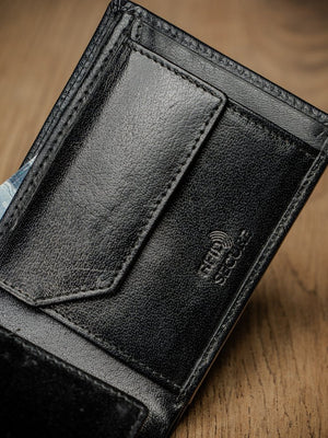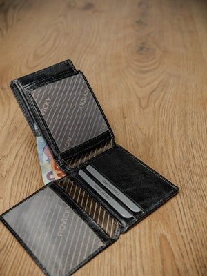 Šis vīriešu ādas maks Rovicky RV2 ir lieliska izvēle tiem, kas novērtē kvalitāti un funkcionalitāti. Izgatavots no īstas ādas, tas ne tikai izskatās eleganti, bet arī nodrošina izturību. Melnā krāsa nodrošina klasisku un daudzpusīgu stilu, kas piemērots jebkuram gadījumam. Maks ir kompakta izmēra, bet tajā var ievietot 6-10 kartes, un integrētā RFID aizsardzība palīdz aizsargāt jūsu datus no neatļautas skenēšanas.