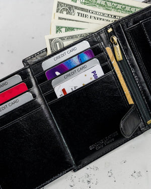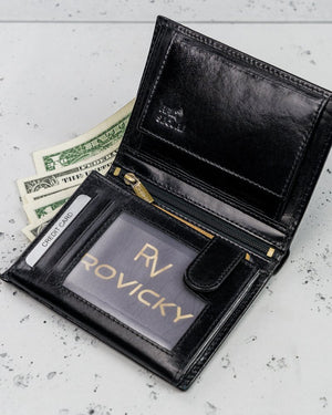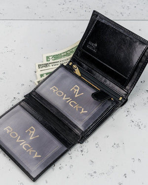 Šis elegantais vīriešu maks no Rovicky ir izgatavots no augstas kvalitātes īstas ādas, kas nodrošina izturību un stilīgu izskatu. Melnā krāsa piešķir tam klasisku un daudzpusīgu izskatu, kas piemērots jebkuram gadījumam.