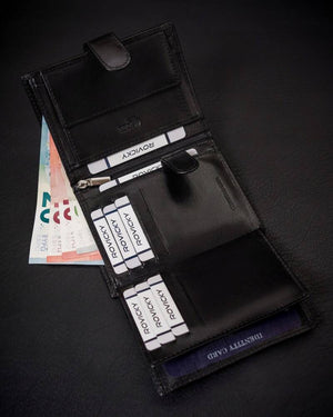 Šis elegantais vīriešu maks no Rovicky ir izgatavots no augstas kvalitātes īstas ādas, kas nodrošina izturību un stilīgu izskatu. Melnais dizains piešķir tam klasisku un daudzpusīgu izskatu, kas piemērots jebkuram gadījumam.
