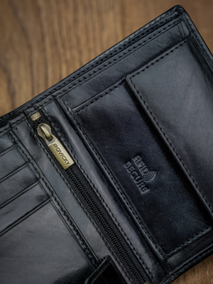 Šis vīriešu ādas maks Rovicky RV93 ir lieliska izvēle tiem, kas novērtē kvalitāti un funkcionalitāti. Izgatavots no īstas ādas, tas ne tikai izskatās eleganti, bet arī ir izturīgs. Melnā krāsa nodrošina klasisku un daudzpusīgu stilu, kas piemērots jebkuram gadījumam. Vidēja izmēra maks ar RFID aizsardzību nodrošina jūsu karšu drošību, un 6-10 karšu nodalījumi ļauj ērti uzglabāt visas nepieciešamās kartes.