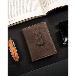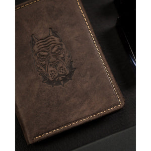 Vīriešu ādas maks, brūns, ar suņa galvas apdruku