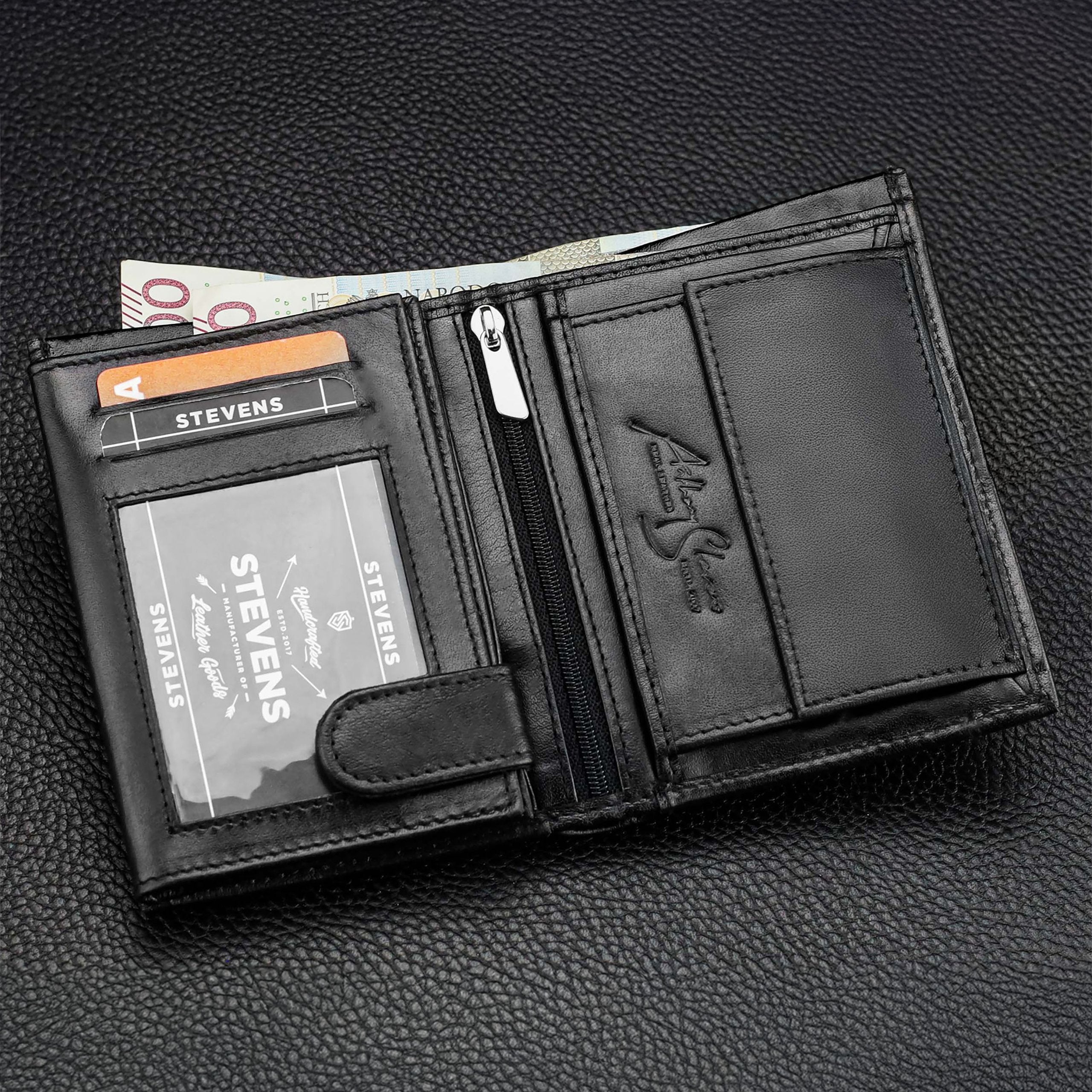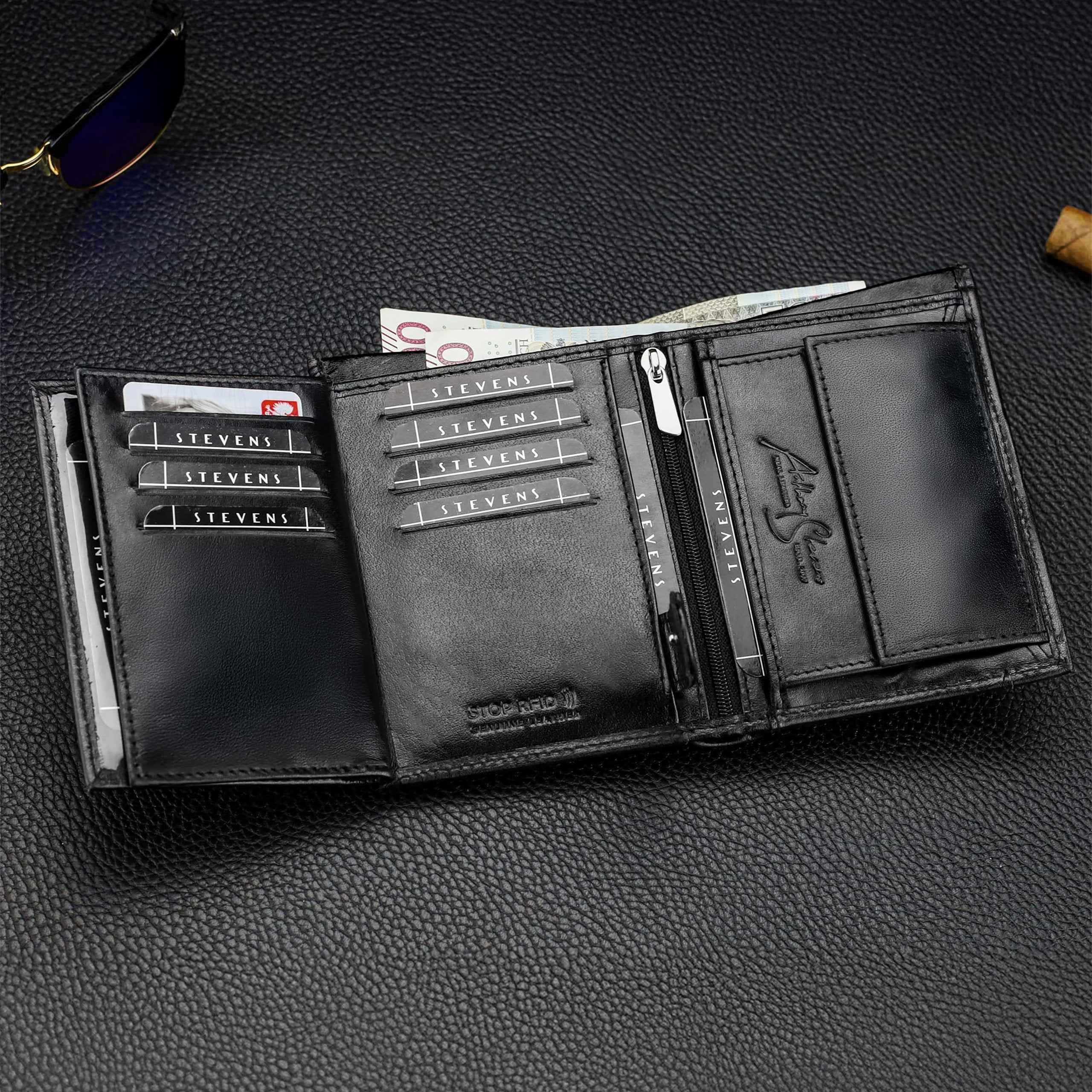 Skórzany portfolio damski STEVENS RFID skóra Czarny Q2 Marka Stevens Vīriešu ādas maks STEVENS ar metāla ķēdīti