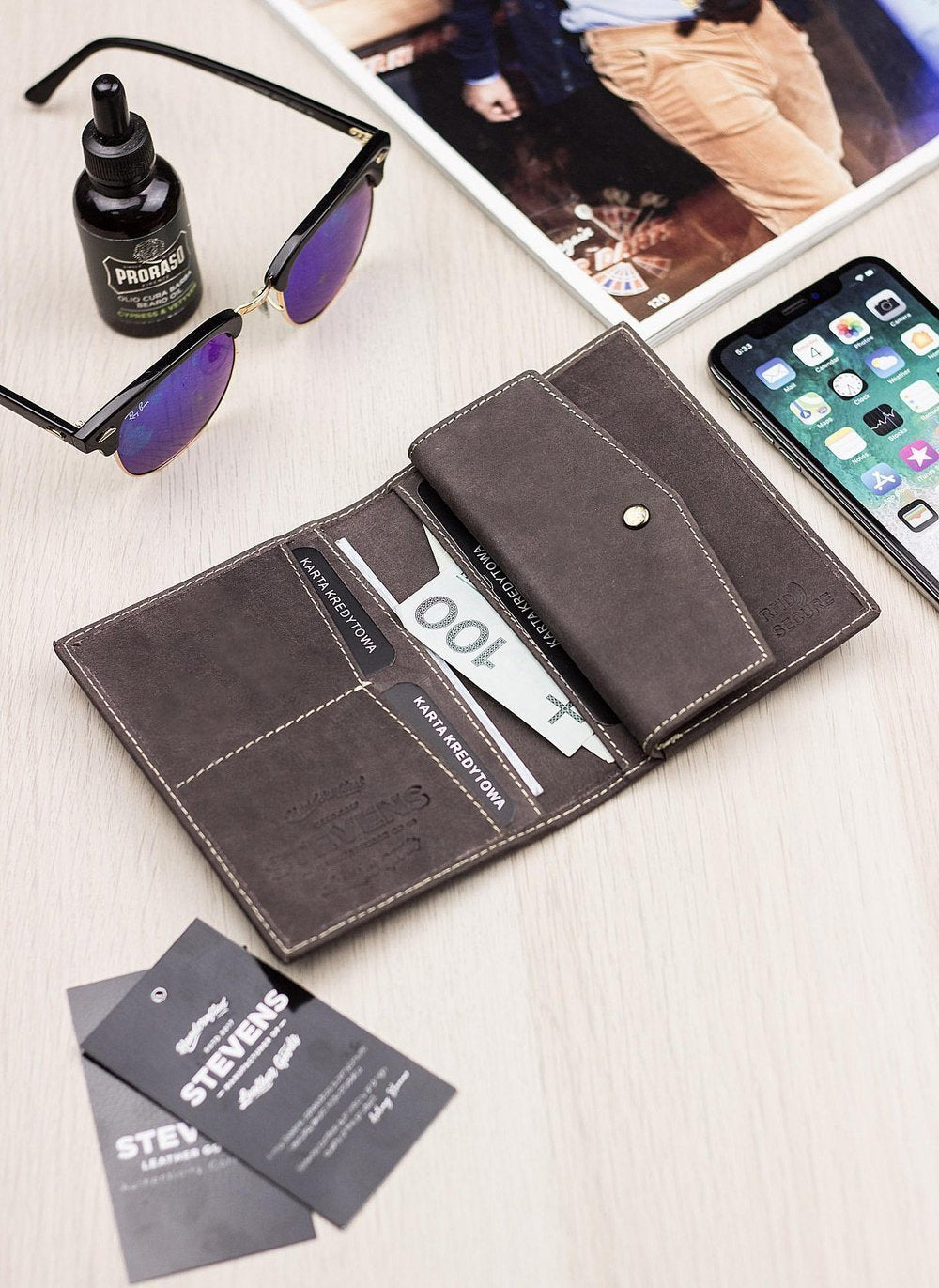 Vīriešu ādas maks STEVENS RFID ar aizsardzību Slim SLIM