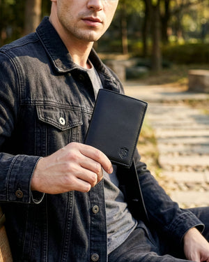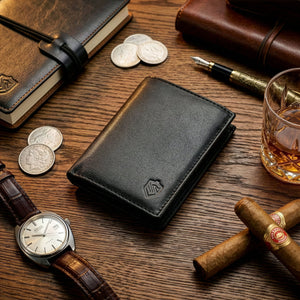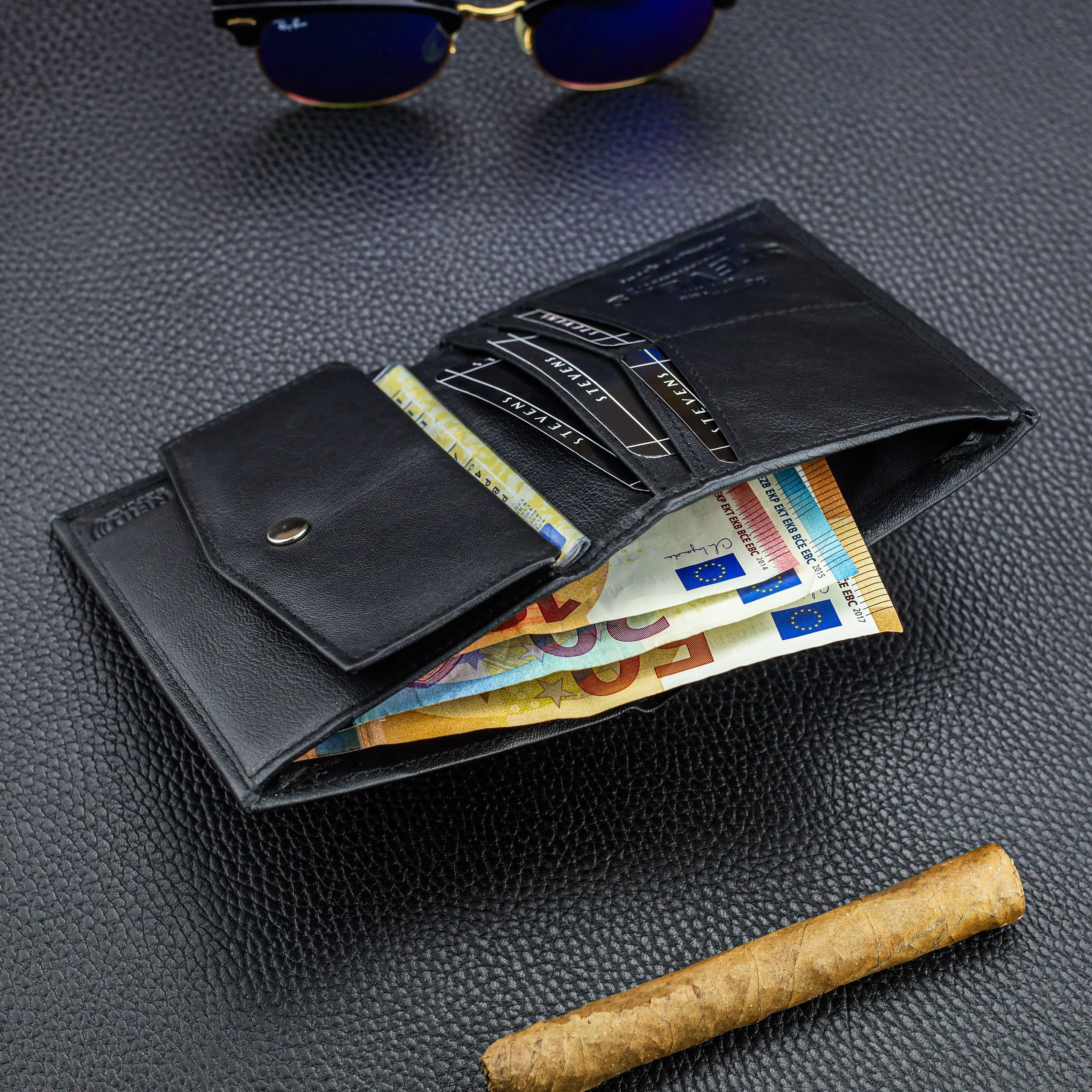 Vīriešu maks STEVENS melns klasisks ādas maks