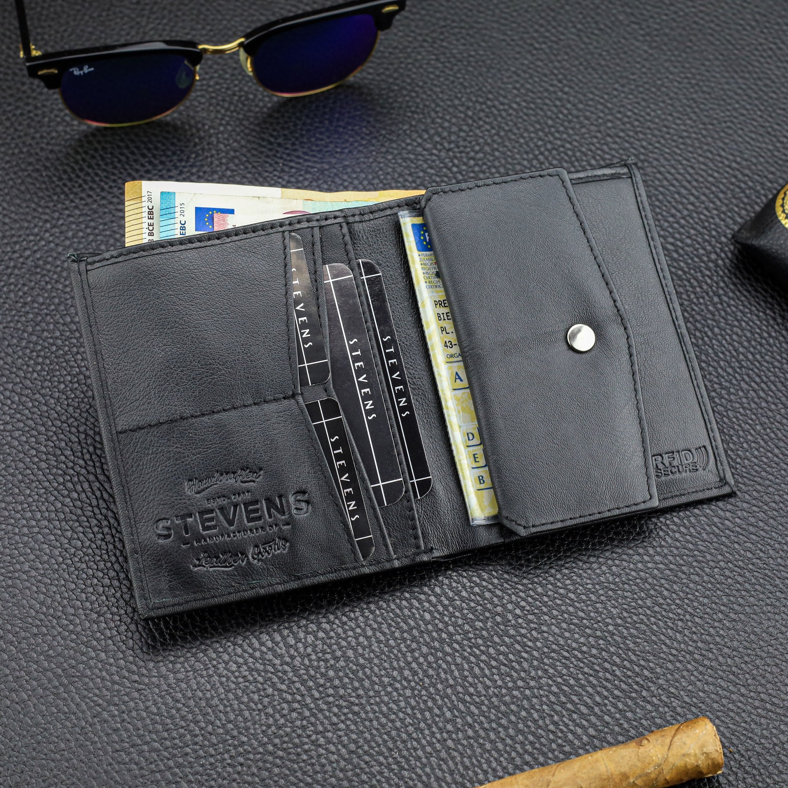 Vīriešu maks STEVENS melns klasisks ādas maks S88
