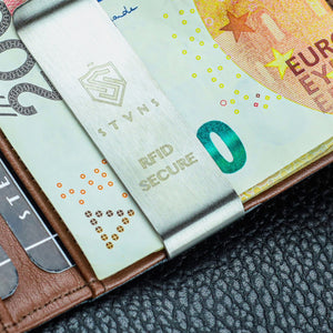- Banknošu klipsis: Nerūsējošā tērauda klipsis nodrošina banknošu drošu glabāšanu.