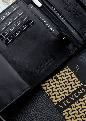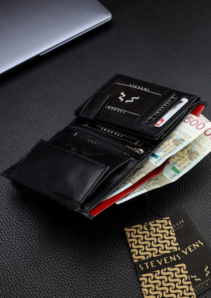 Vīriešu maks STEVENS PREMIUM, īsta āda, RFID, melns, Q3