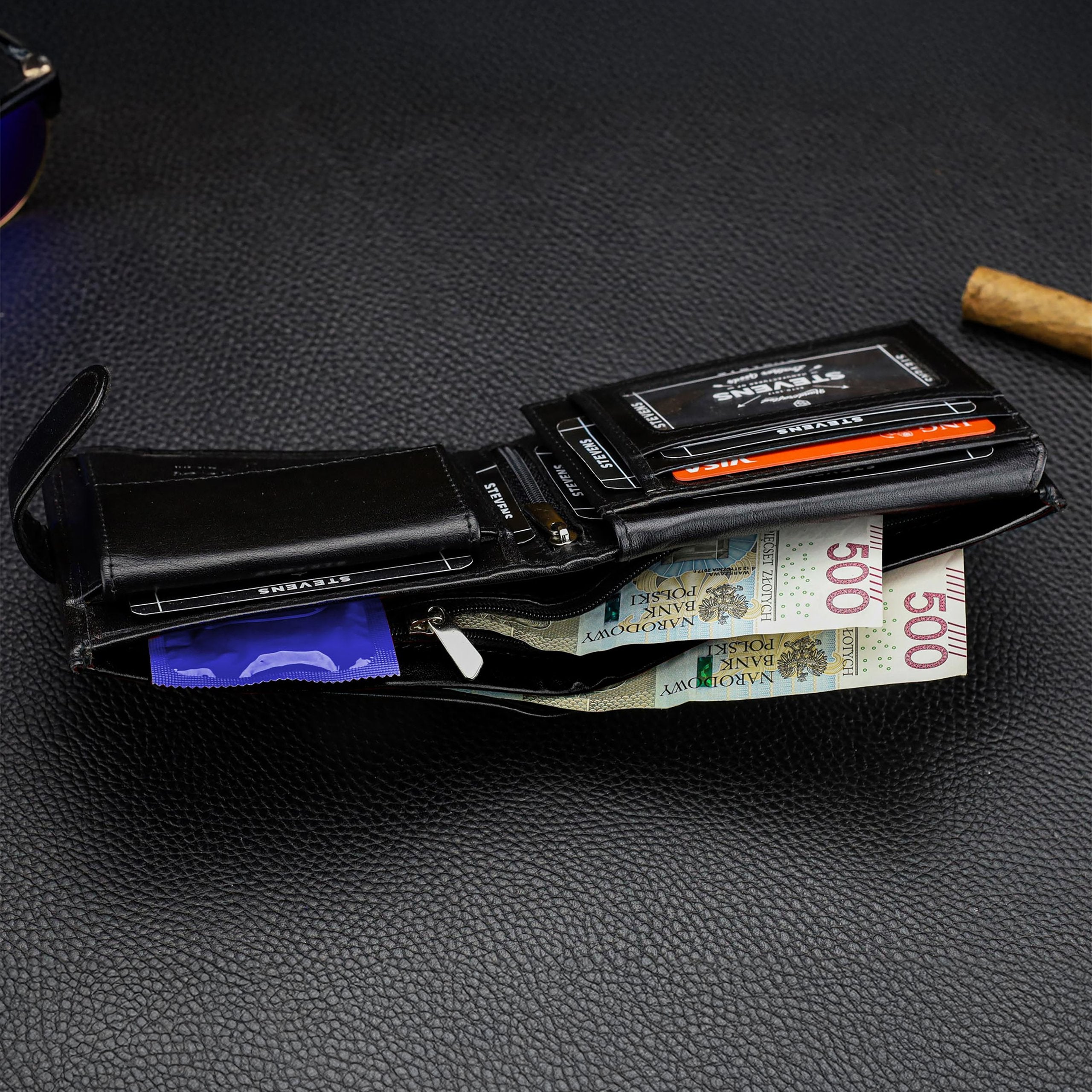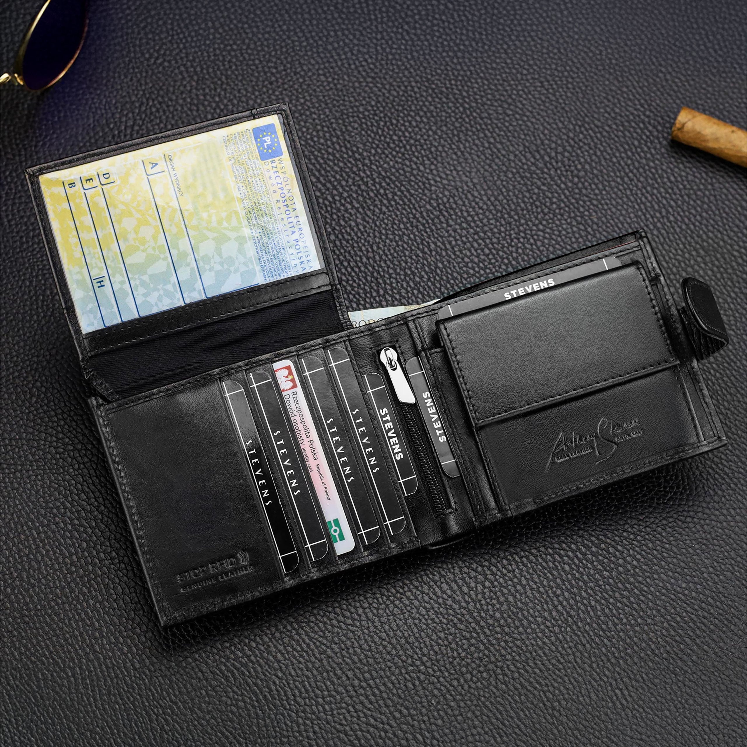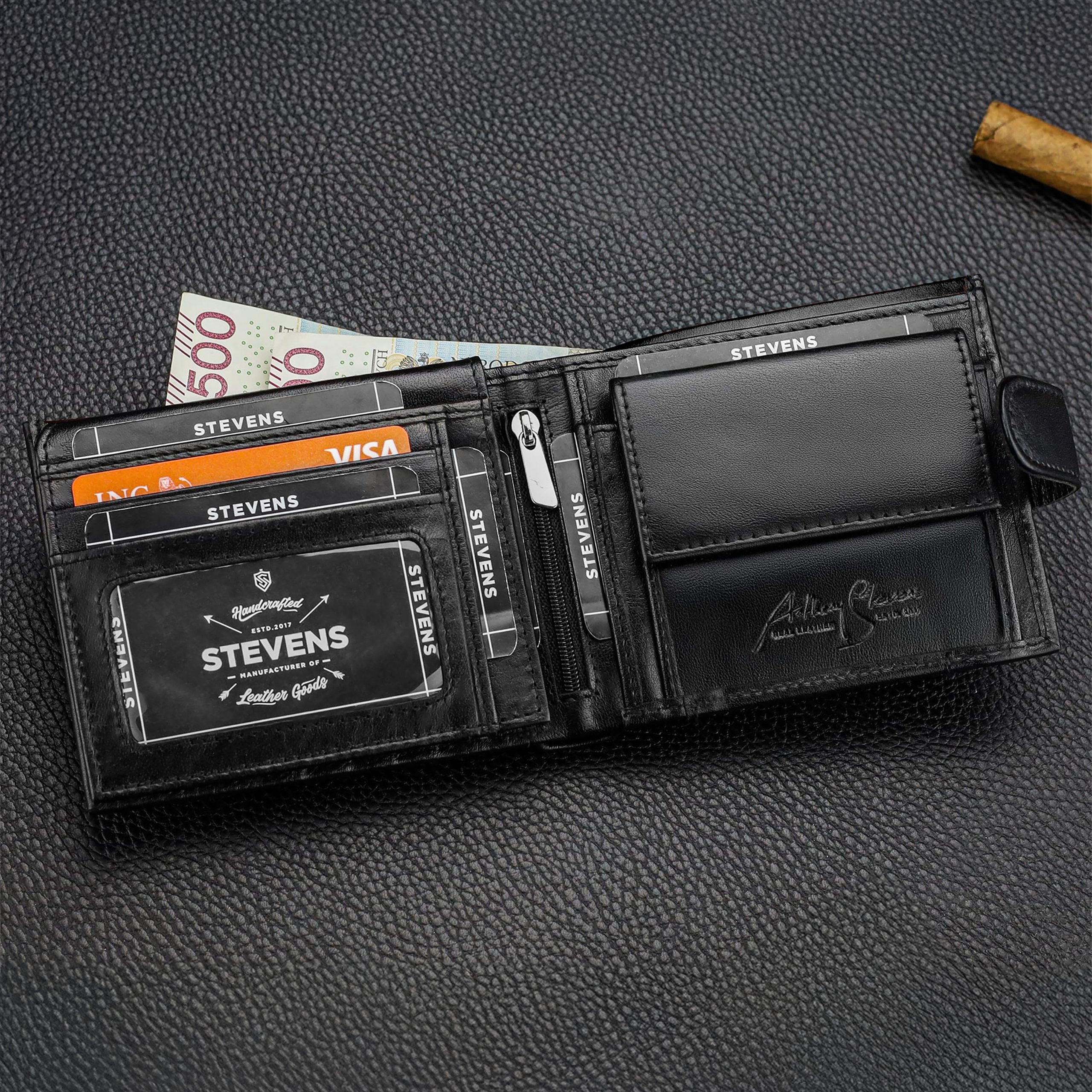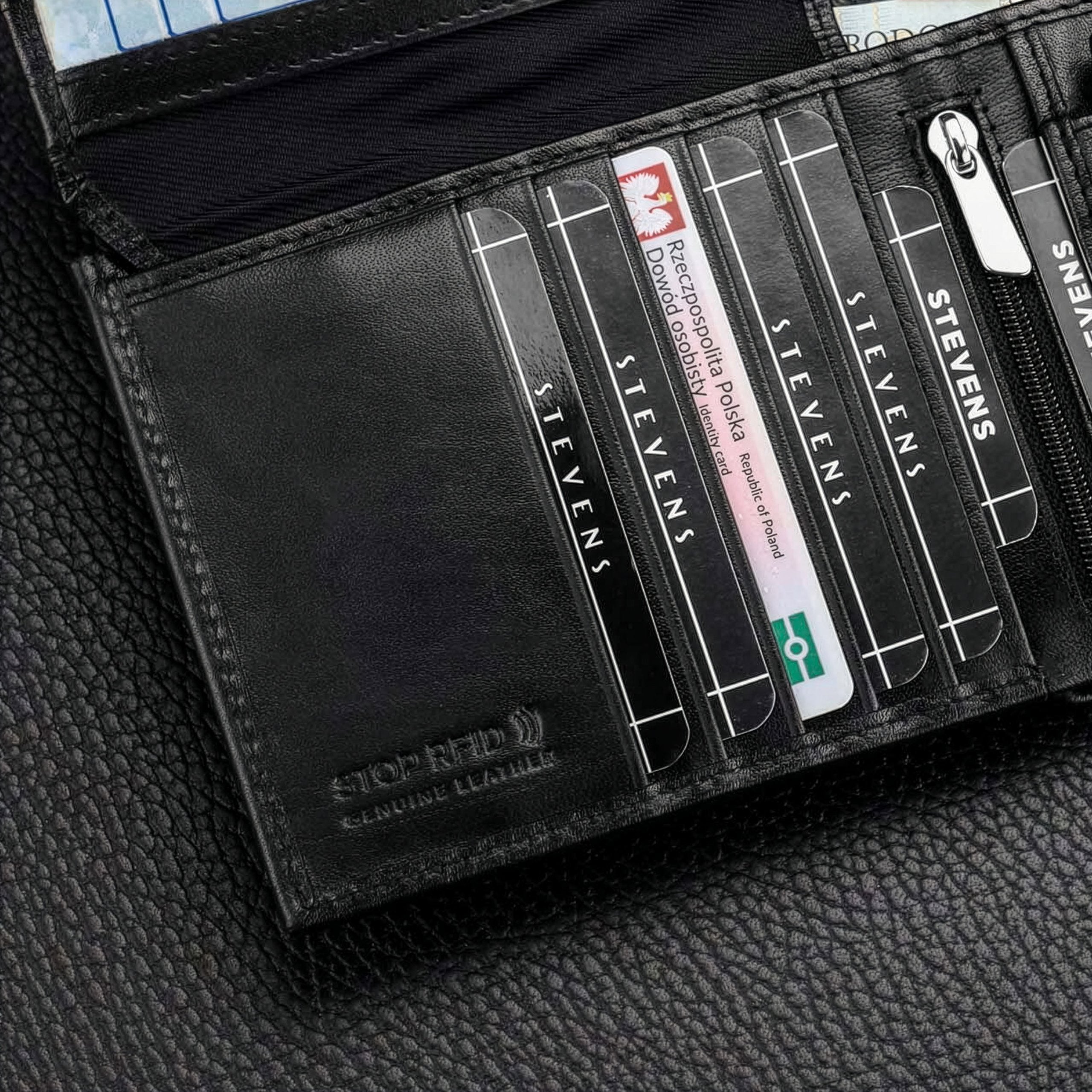 Vīriešu ādas maks Stevens PREMIUM, melns, ar RFID aizsardzību 02-8888-R