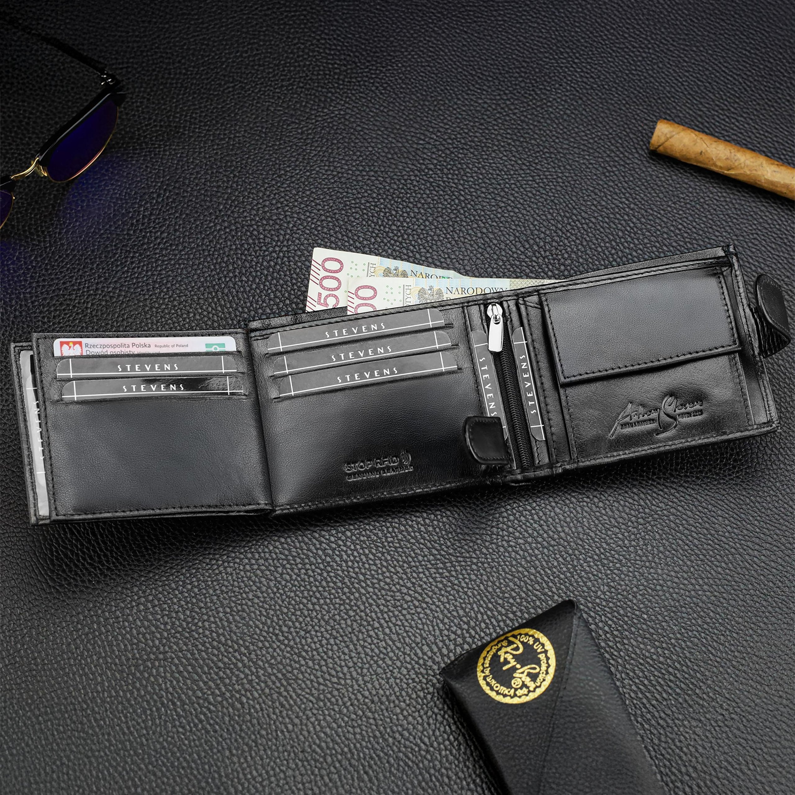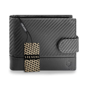 Vīriešu maks STEVENS CARBON, dabīgā āda, RFID, melns