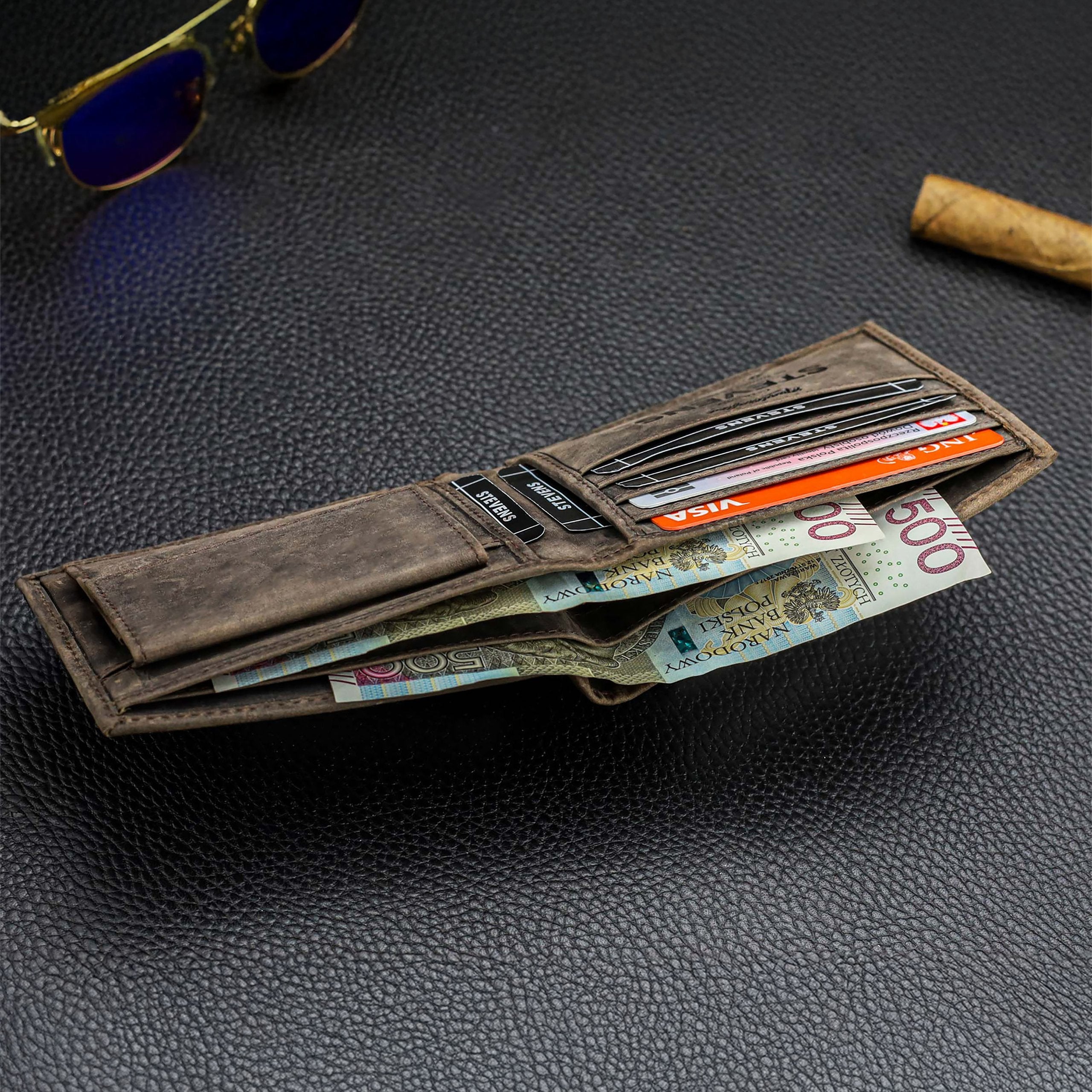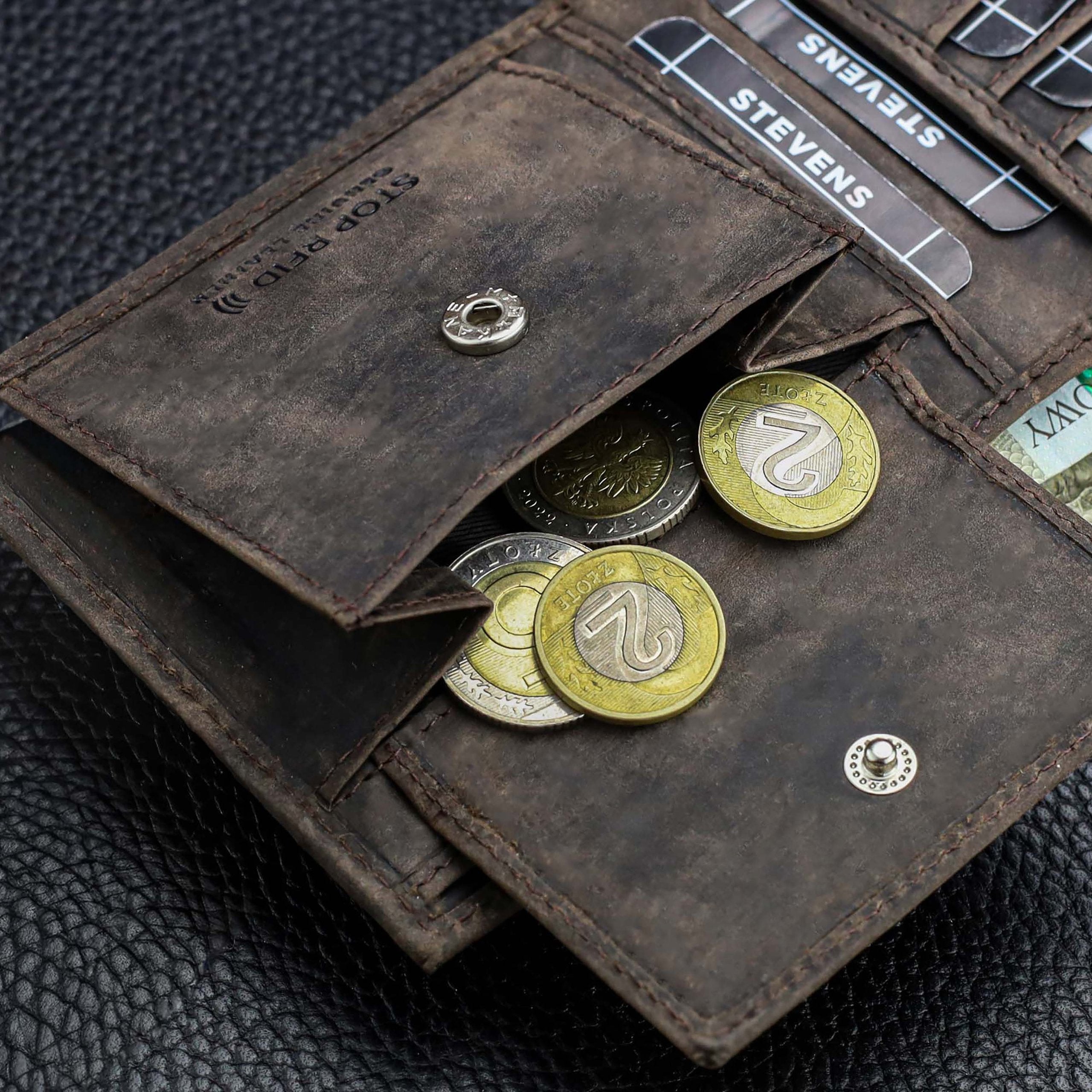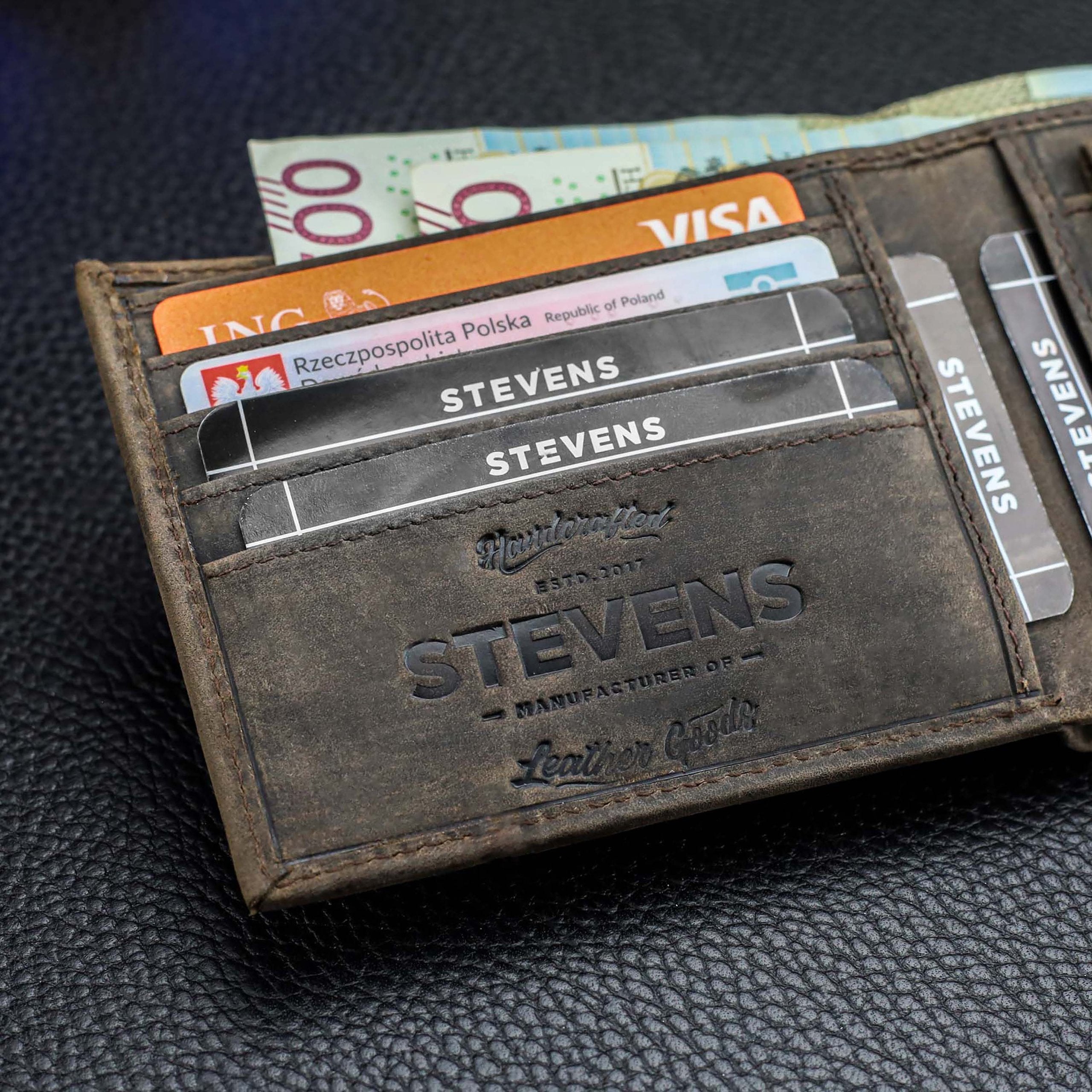 Vīriešu maks STEVENS® no dabīgas ādas, RFID, brūns, SLIM