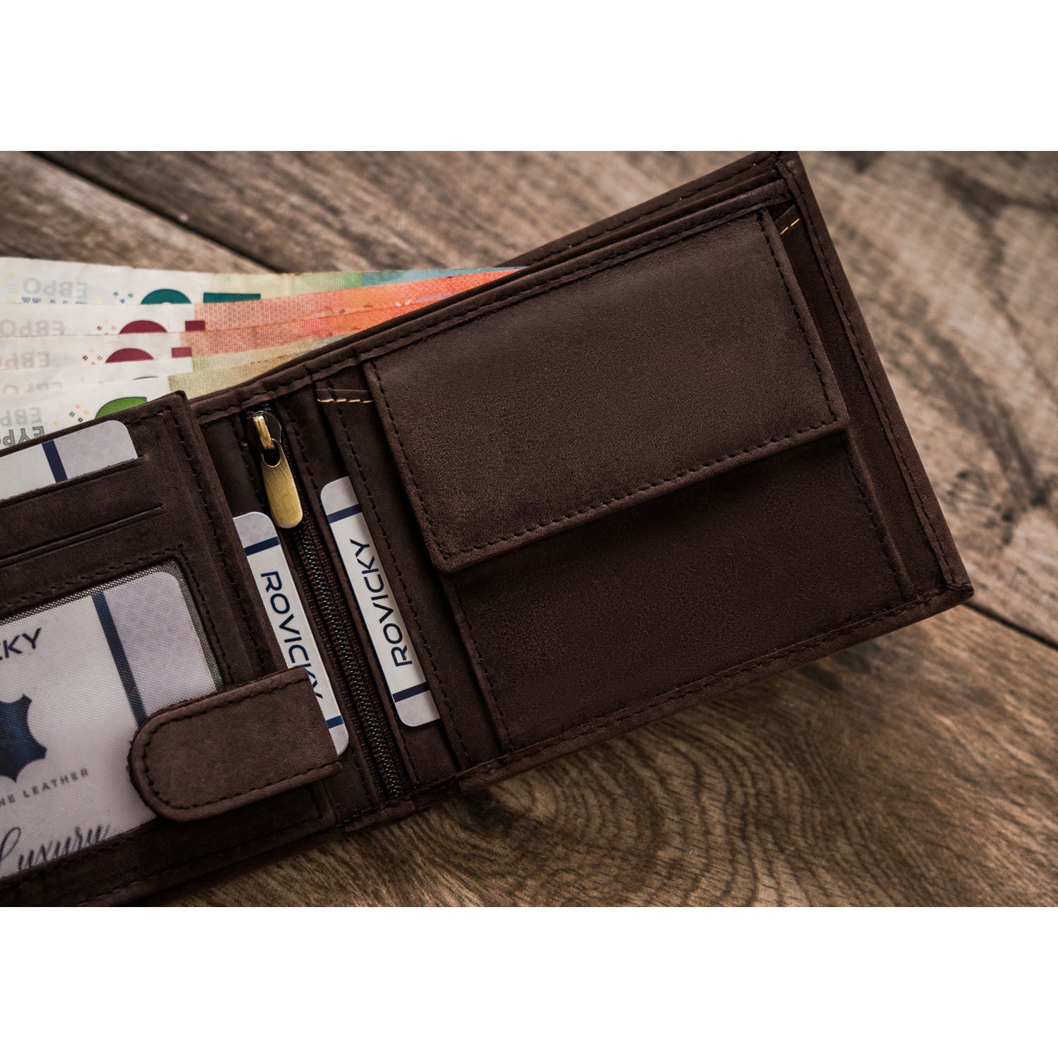 - 6-10 karšu nodalījumi, kabata monētām ar rāvējslēdzēju.