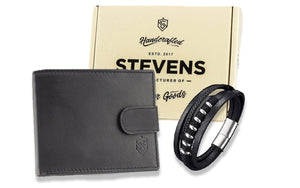 Dāvanu komplekts vīriešiem ar rokassprādzi un īstas ādas maku Stevens.
