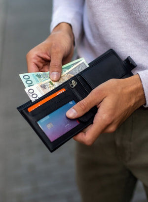 • 1 nodalījums ar rāvējslēdzēju maka vidū