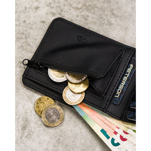 Peterson vīriešu rokassoma, izgatavota no mākslīgās ādas, melnā krāsā, ar RFID aizsardzību.