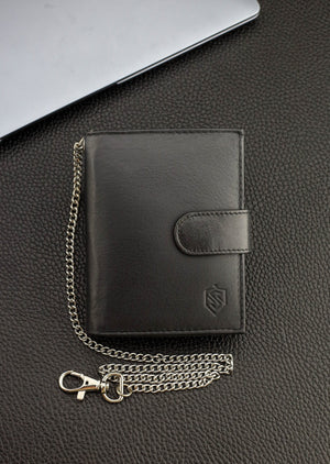 Melns vīriešu maks STEVENS ar ķēdīti S1083